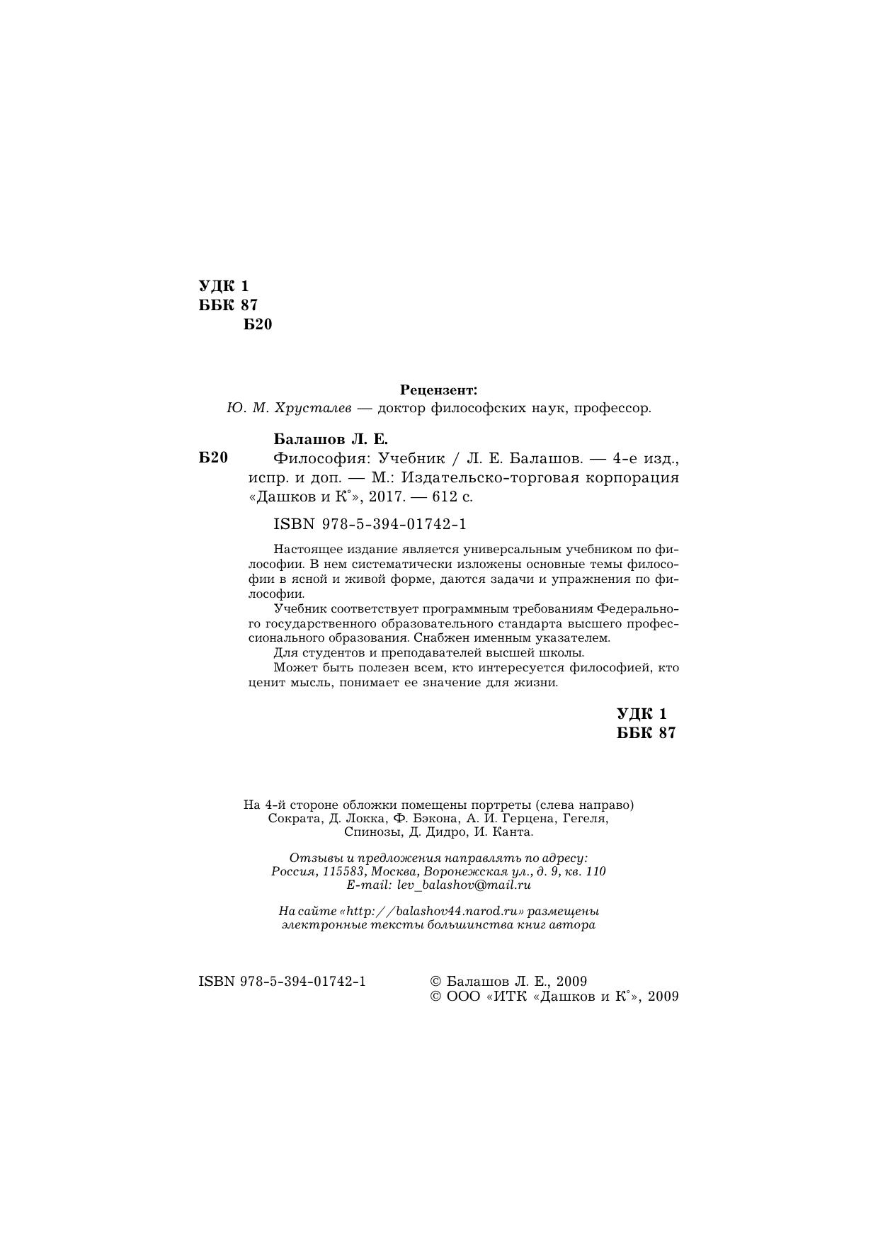 Настоящее издание является универсальным учебником по философии. В нем систематически изложены основные темы философии в ясной и живой форме, даются задачи и упражнения по философии. Учебник соответствует программным требованиям Федерального государственного образовательного стандарта высшего профессионального образования. Снабжен именным указателем. Для студентов и преподавателей высшей школы. Может быть полезен всем, кто интересуется философией, кто ценит мысль, понимает ее значение для жизни.