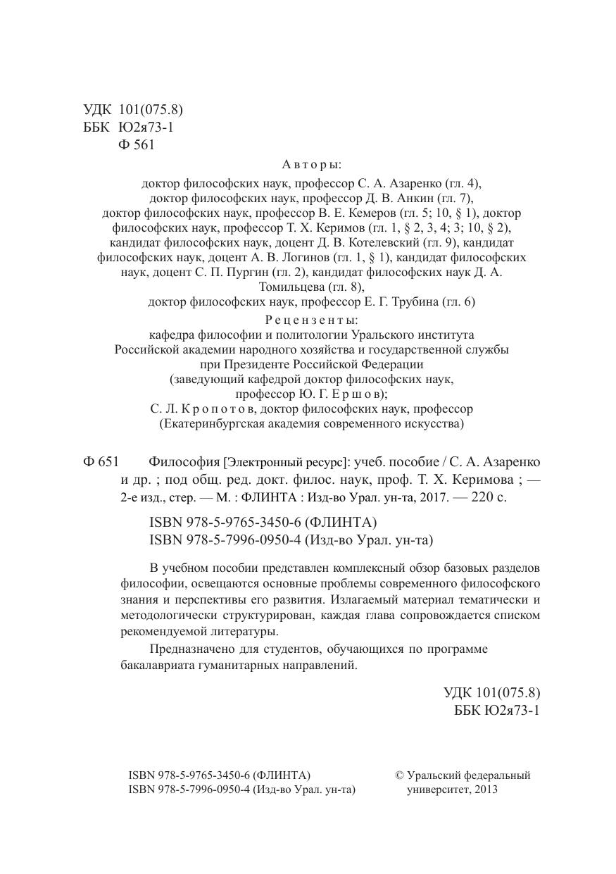 В учебном пособии представлен комплексный обзор базовых разделов философии, освещаются основные проблемы современного философского знания и перспективы его развития. излагаемый материал тематически и методологически структурирован, каждая глава сопровождается списком рекомендуемой литературы. Предназначено для студентов, обучающихся по программе бакалавриата гуманитарных направлений.