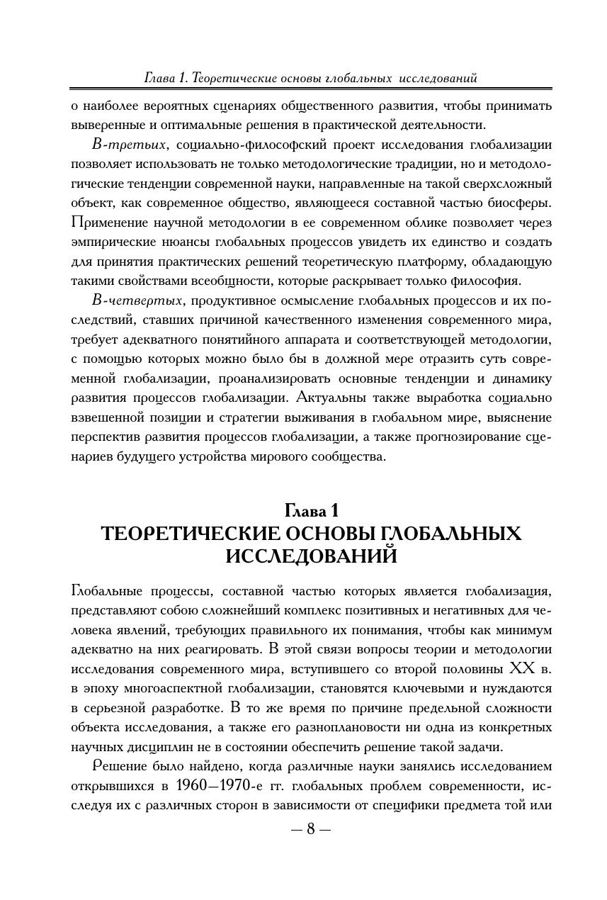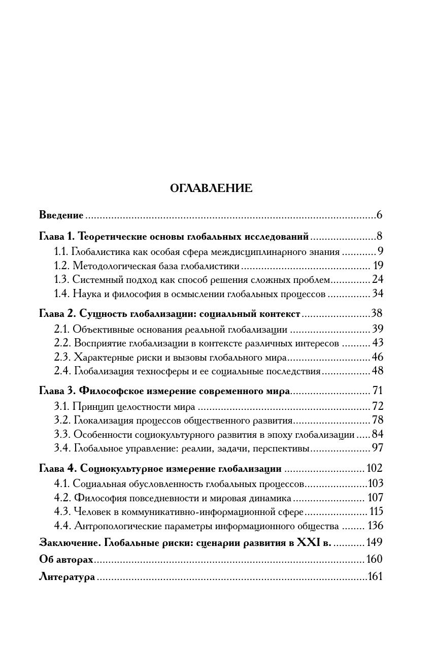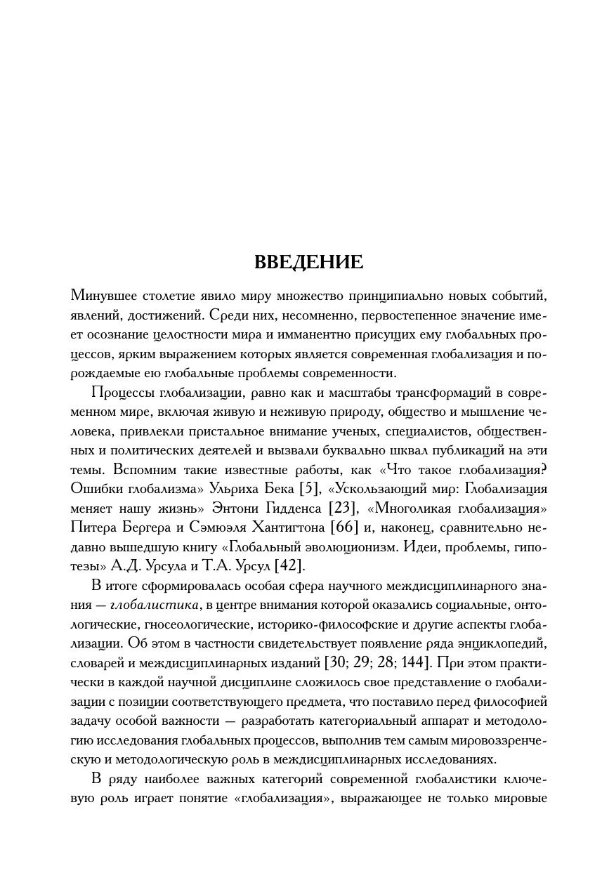 Книга посвящена философскому осмыслению одной из наиболее актуальных тем современного мира – глобализации. На базе основных достижений особой области междисциплинарного научного знания – глобалистики – и новейших фактических данных авторы с философской позиции рассматривают методологические проблемы исследования глобальных процессов, выявляют сущность, тенденции развития и важнейшие черты современной глобализации, исследуют ее позитивные и негативные последствия, уделяют внимание социальным и гуманитарным аспектам решения важнейших противоречий современно мира. Для философов, культурологов, представителей других областей наук. Представляет интерес как для специалистов в области глобальных исследований, так и для широкого круга читателей, интересующихся современными мировыми процессами.