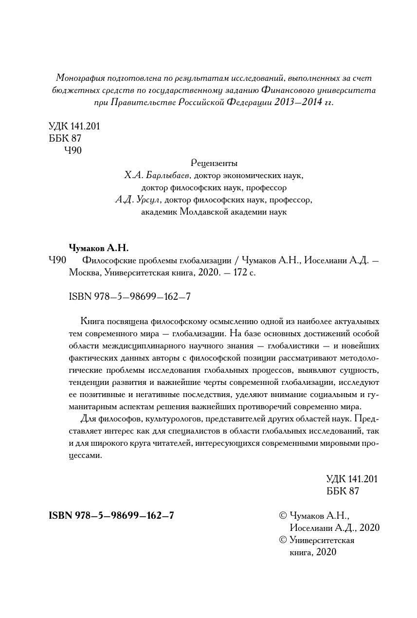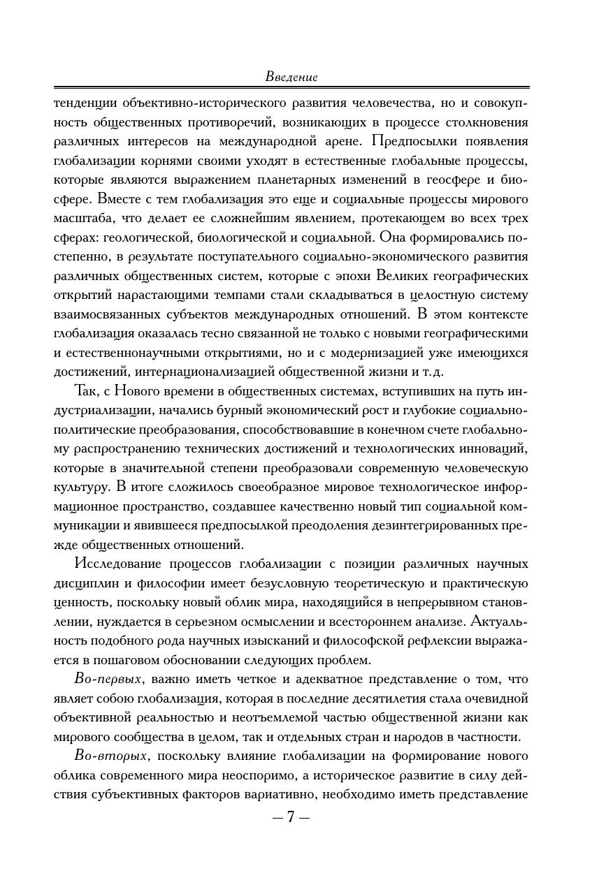 Книга посвящена философскому осмыслению одной из наиболее актуальных тем современного мира – глобализации. На базе основных достижений особой области междисциплинарного научного знания – глобалистики – и новейших фактических данных авторы с философской позиции рассматривают методологические проблемы исследования глобальных процессов, выявляют сущность, тенденции развития и важнейшие черты современной глобализации, исследуют ее позитивные и негативные последствия, уделяют внимание социальным и гуманитарным аспектам решения важнейших противоречий современного мира. Для философов, культурологов, представителей других областей наук. Представляет интерес как для специалистов в области глобальных исследований, так и для широкого круга читателей, интересующихся современными мировыми процессами.