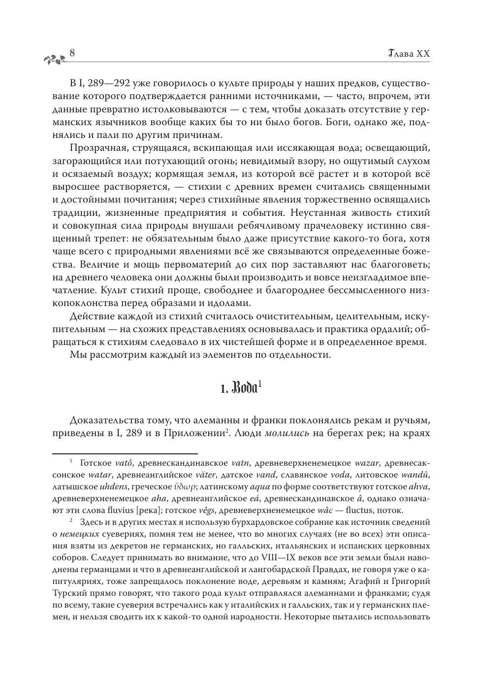 «Германская мифология» — фундаментальное исследование, посвященное историческому мировоззрению континентальных германцев и принадлежащее перу Якоба Гримма (1785—1863), одного из крупнейших языковедов XIX века, старшего из братьев Гримм. Книга оказала всестороннее влияние на целое поколение ученых и стала источником вдохновения филологов и этнографов по всему миру (в том числе и русских ученых). Вместе с «Германской мифологией» в фольклористике утвердилась новая методологическая школа, работающая с мифом как с живой частью языка, ядром непреходящей народной традиции. Во многих отношениях работа Гримма остается непревзойденным эталоном: в частности, это наиболее полный источниковедческий труд по данной теме. В настоящем издании представлен первый перевод «Германской мифологии» на русский язык, перевод выполнен по наиболее полному, четвертому, изданию книги (завершено в 1878 году) без купюр и сокращений. В переводе разрешаются основные сложности, с которыми сталкивается современный читатель оригинала «Германской мифологии», полностью переведены все содержащиеся в книге цитаты на разных языках, древних и новых, текст снабжен списком литературы и комментариями. Многоязычный цитируемый материал составляет не менее трети всей книги и не переводился ни у автора, ни в современных переизданиях. Что касается литературы, Гримм ссылается на сотни источников, среди которых много редких и малоизвестных, ссылки, однако, по традиции XIX века приводятся автором в сокращениях и в данном издании расшифрованы впервые. Таким образом, на русском языке выходит первое в истории академическое издание «Германской мифологии», включающее в себя весь необходимый справочный аппарат.