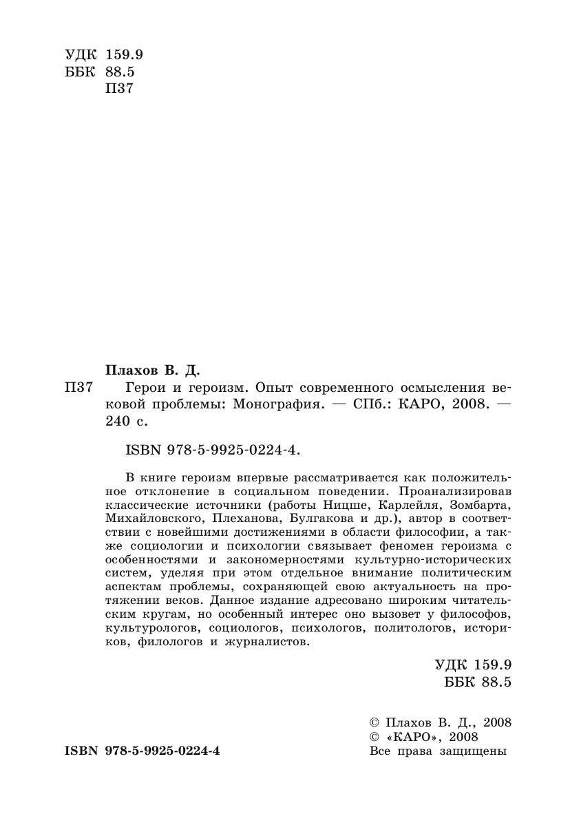 В книге героизм впервые рассматривается как положительное отклонение в социальном поведении. Проанализировав классические источники (работы Ницше, Карлейля, Зомбарта, Михайловского, Плеханова, Булгакова и др.), автор в соответствии с новейшими достижениями в области философии, а также социологии и психологии связывает феномен героизма с особенностями и закономерностями культурно-исторических систем, уделяя при этом отдельное внимание политическим аспектам проблемы, сохраняющей свою актуальность на протяжении веков. Данное издание адресовано широким читательским кругам, но особенный интерес оно вызовет у философов, культурологов, социологов, психологов, политологов, историков, филологов и журналистов.