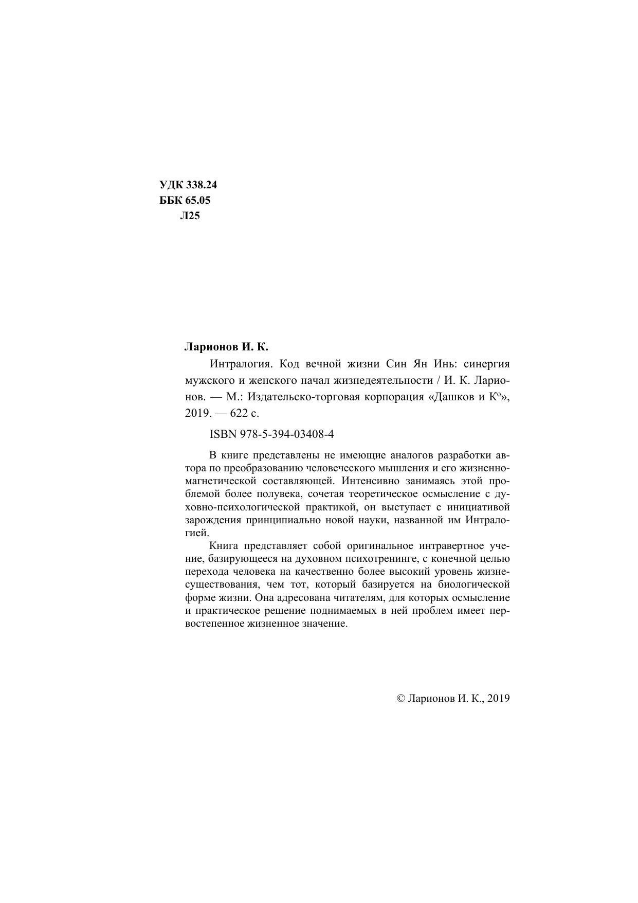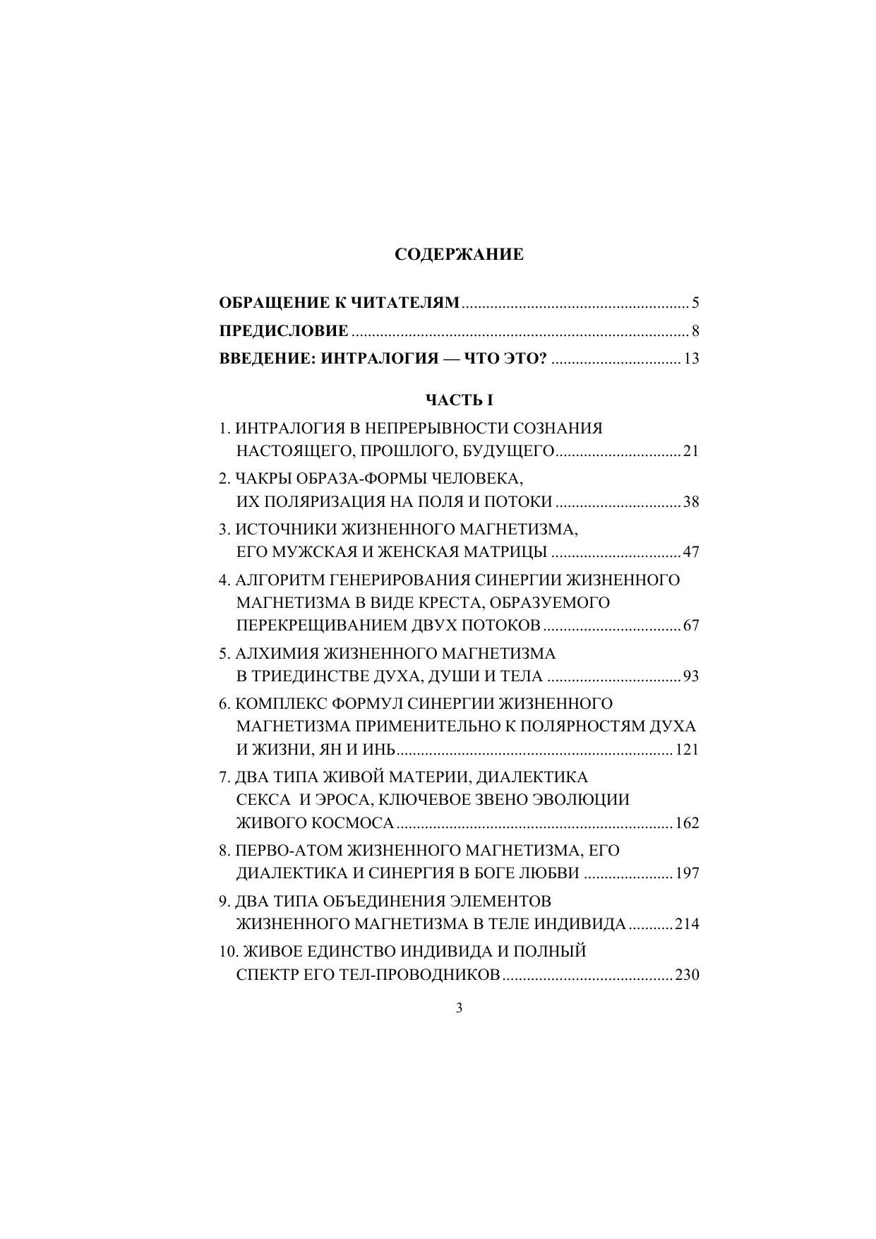 В книге представлены не имеющие аналогов разработки автора по преобразованию человеческого мышления и его жизненно-магнетической составляющей. Интенсивно занимаясь этой проблемой более полувека, сочетая теоретическое осмысление с духовно-психологической практикой, он выступает с инициативой зарождения принципиально новой науки, названной им Интралогией. Книга представляет собой оригинальное интравертное учение, базирующееся на духовном психотренинге, с конечной целью перехода человека на качественно более высокий уровень жизнесуществования, чем тот, который базируется на биологической форме жизни. Она адресована читателям, для которых осмысление и практическое решение поднимаемых в ней проблем имеет первостепенное жизненное значение.