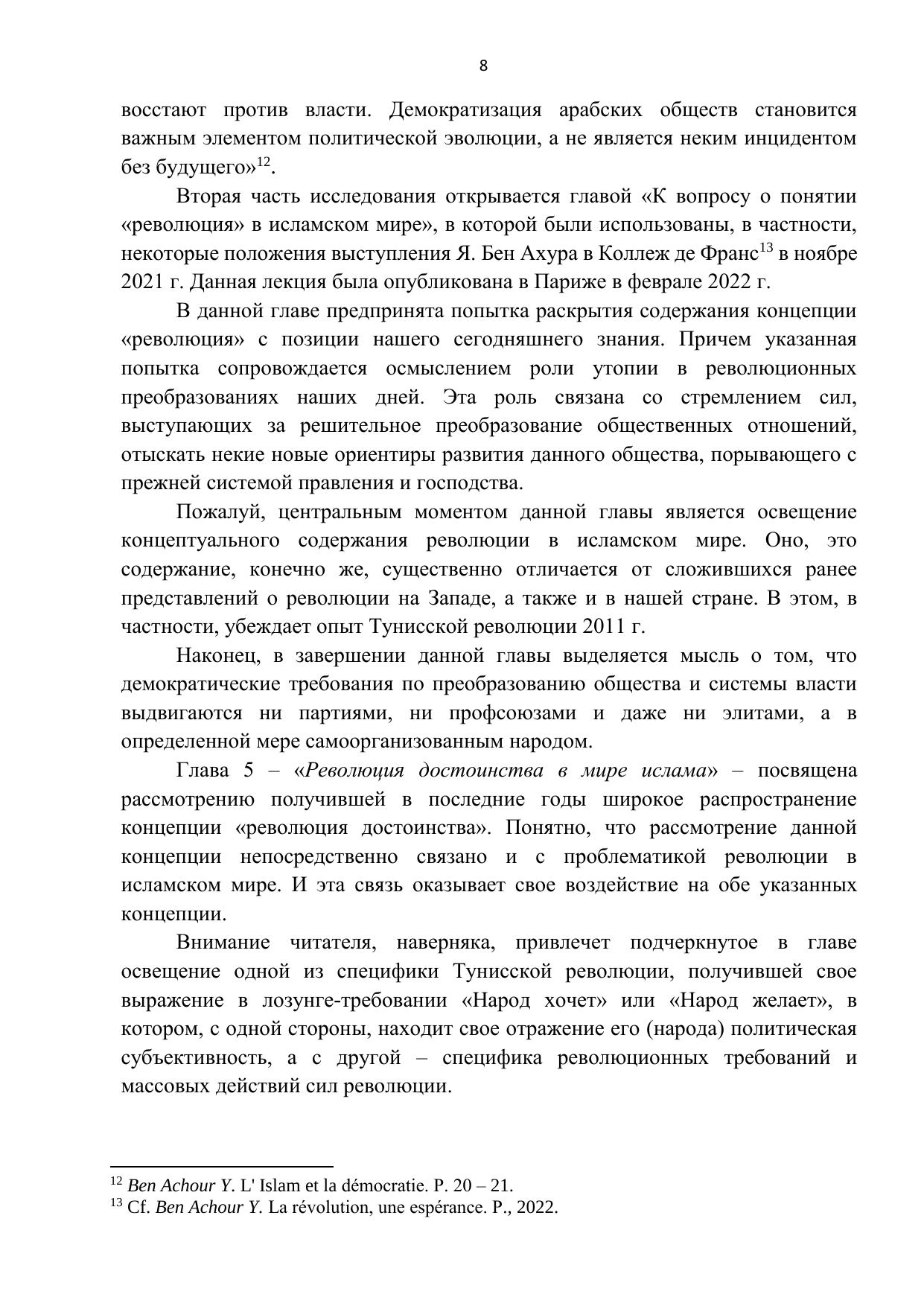 Представлены взгляды исламских ученых и политиков на современное понимание революционно-демократических преобразований в исламских странах. Дано развернутое изложение современной концепции «революция». Раскрыто содержание понятия «революция достоинства». Показана роль народа как коллективного актора Тунисской революции. Дана краткая характеристика «второй волны» революции в арабском мире.