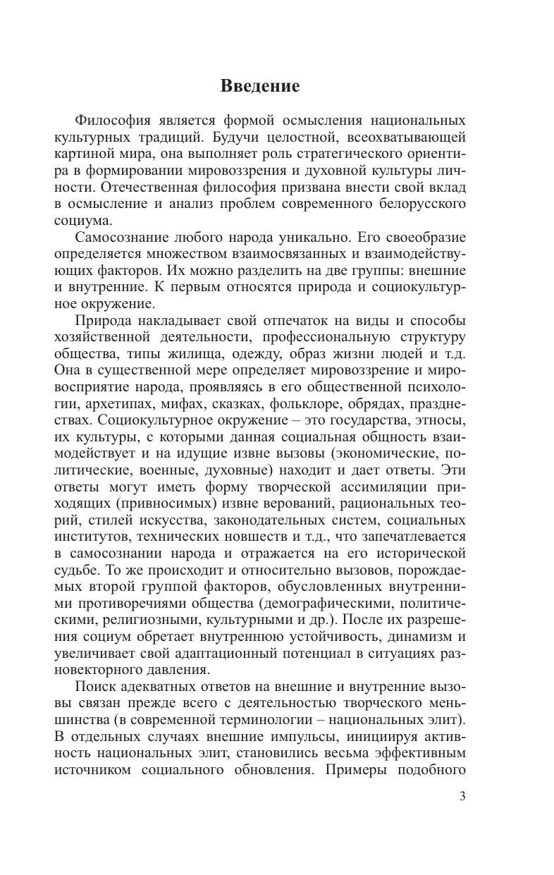 Рассматриваются основные этапы развития белорусской философской мысли, анализируются ее особенности в различные исторические эпохи, очерчиваются задачи и перспективы современной отечественной философии в развитии национального самосознания и формировании гражданско-патриотического мировоззрения молодого поколения. Через персоналии выдающихся мыслителей и деятелей культуры реконструируются гуманистическая и интеллектуальная традиции философии Беларуси. Практическая значимость философии как неотъемлемого компонента национальной культуры рассматривается в контексте синергийных процессов социокультурной динамики современного белорусского общества. Для студентов вузов по гуманитарным специальностям, магистрантов.