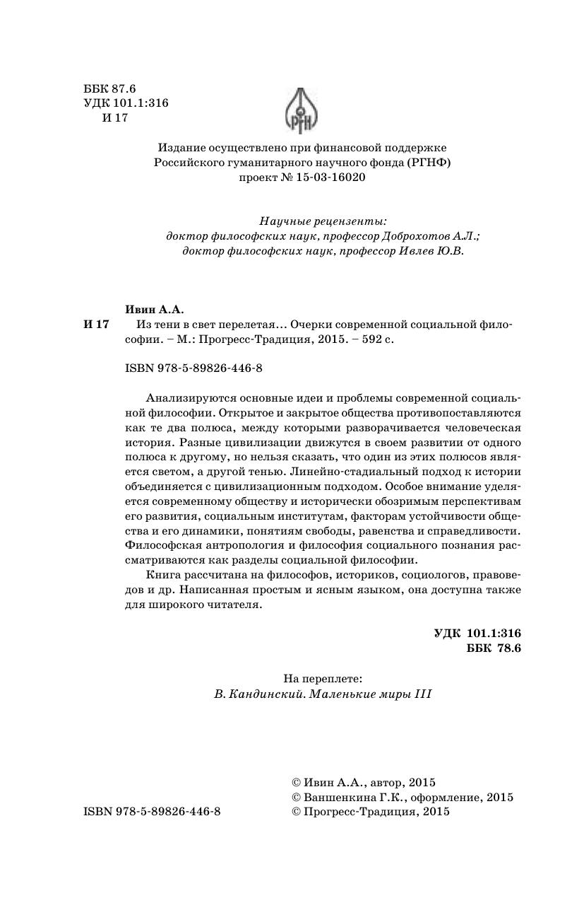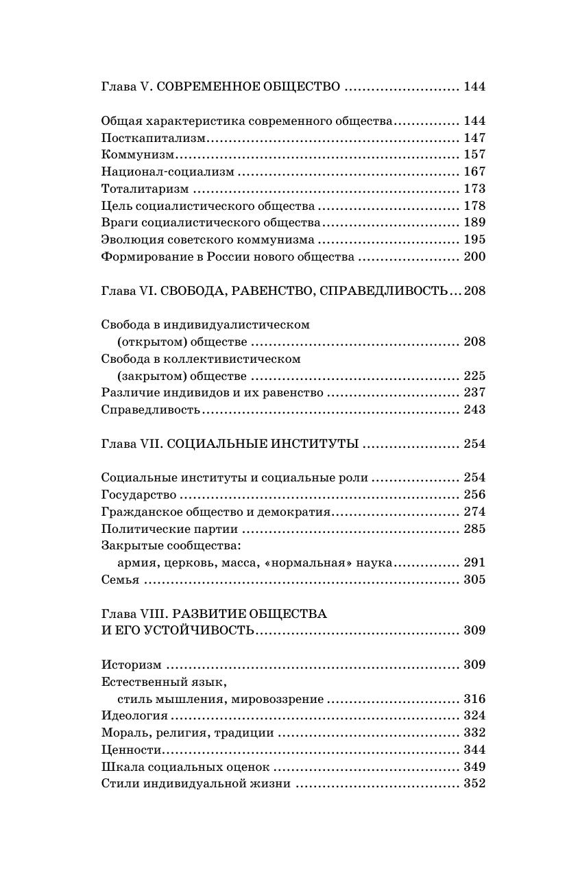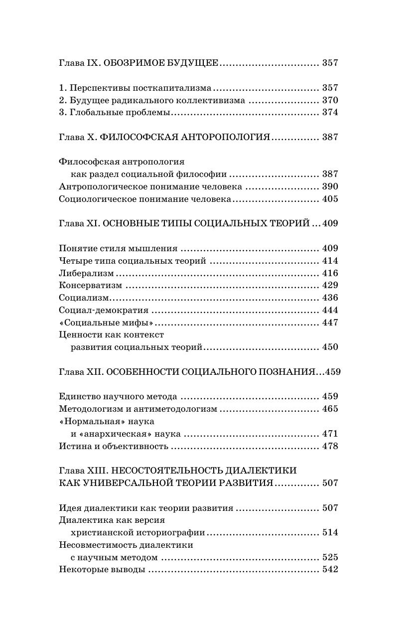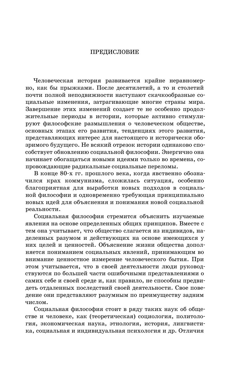 Анализируются основные идеи и проблемы современной социальной философии. Открытое и закрытое общества противопоставляются как те два полюса, между которыми разворачивается человеческая история. Разные цивилизации движутся в своем развитии от одного полюса к другому, но нельзя сказать, что один из этих полюсов является светом, а другой тенью. Линейно-стадиальный подход к истории объединяется с цивилизационным подходом. Особое внимание уделяется современному обществу и исторически обозримым перспективам его развития, социальным институтам, факторам устойчивости общества и его динамики, понятиям свободы, равенства и справедливости. Философская антропология и философия социального познания рассматриваются как разделы социальной философии.
