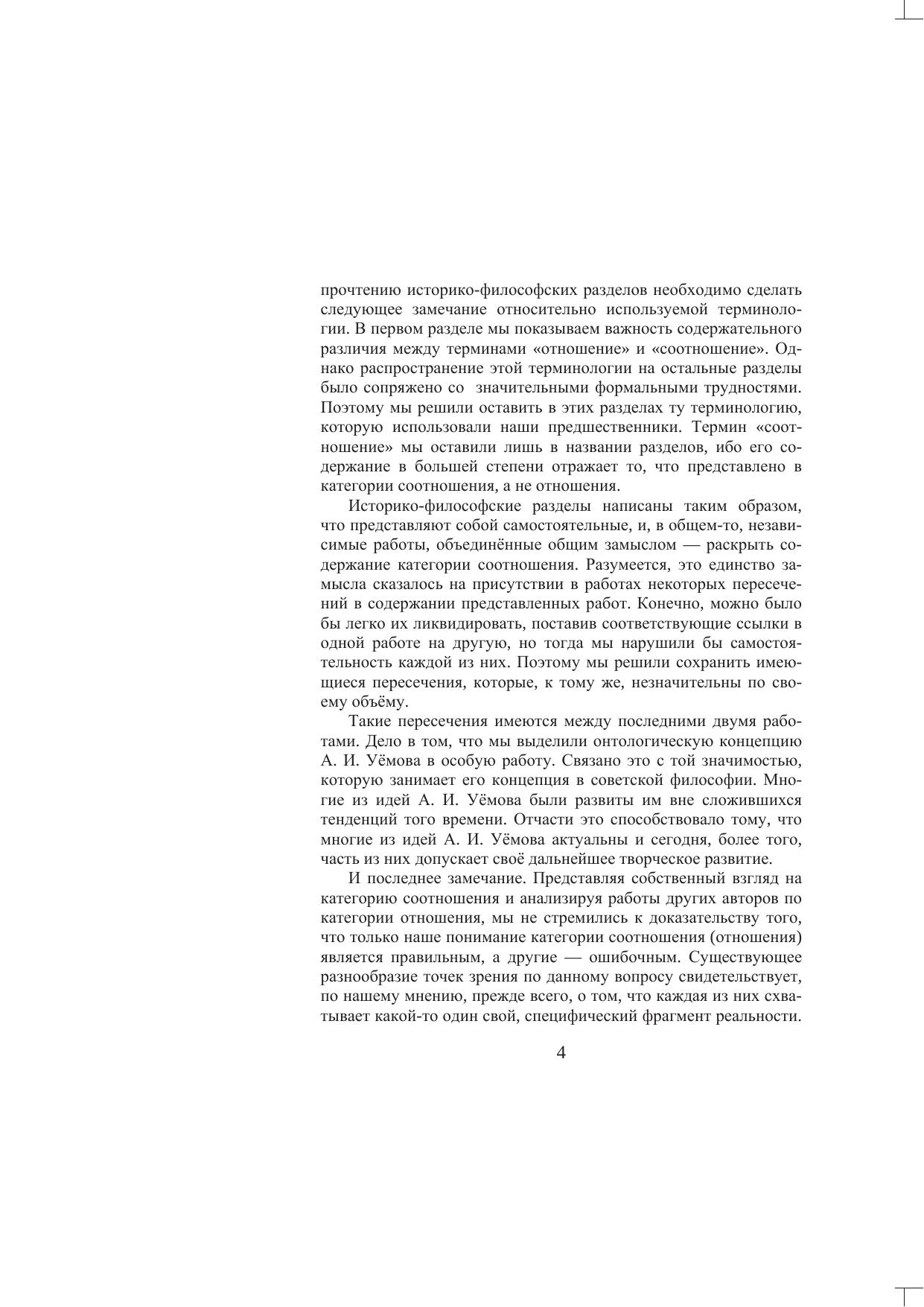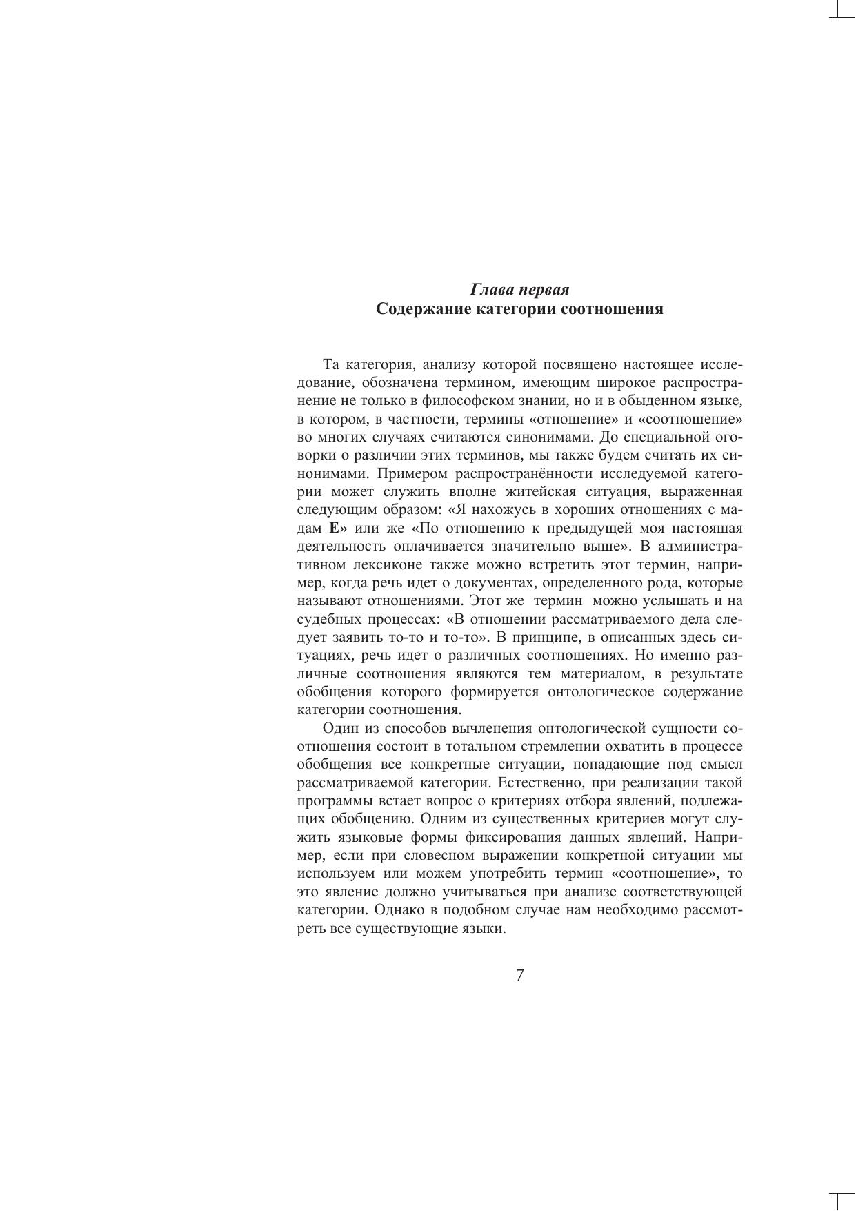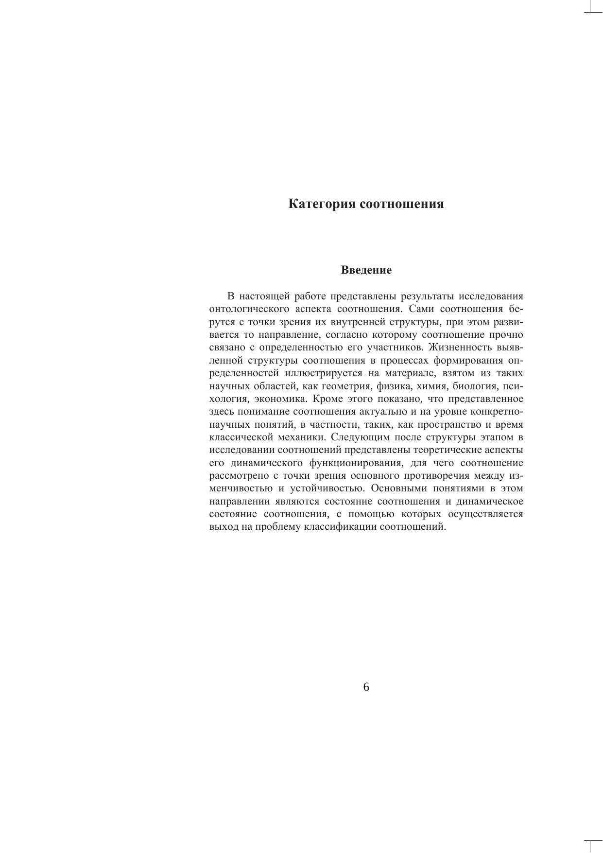 В монографии категория соотношения рассматривается в двух аспектах: онтологическом и историко-философском. В первом случае содержание категории соотношения отражает формирование определённости сущего, при этом само содержание категории представлено как структура соотношения. Во втором аспекте рассмотрены взгляды на категорию отношения логиков и философов в советский период. Книга предназначена для специалистов в области онтологии, логики и истории философии.