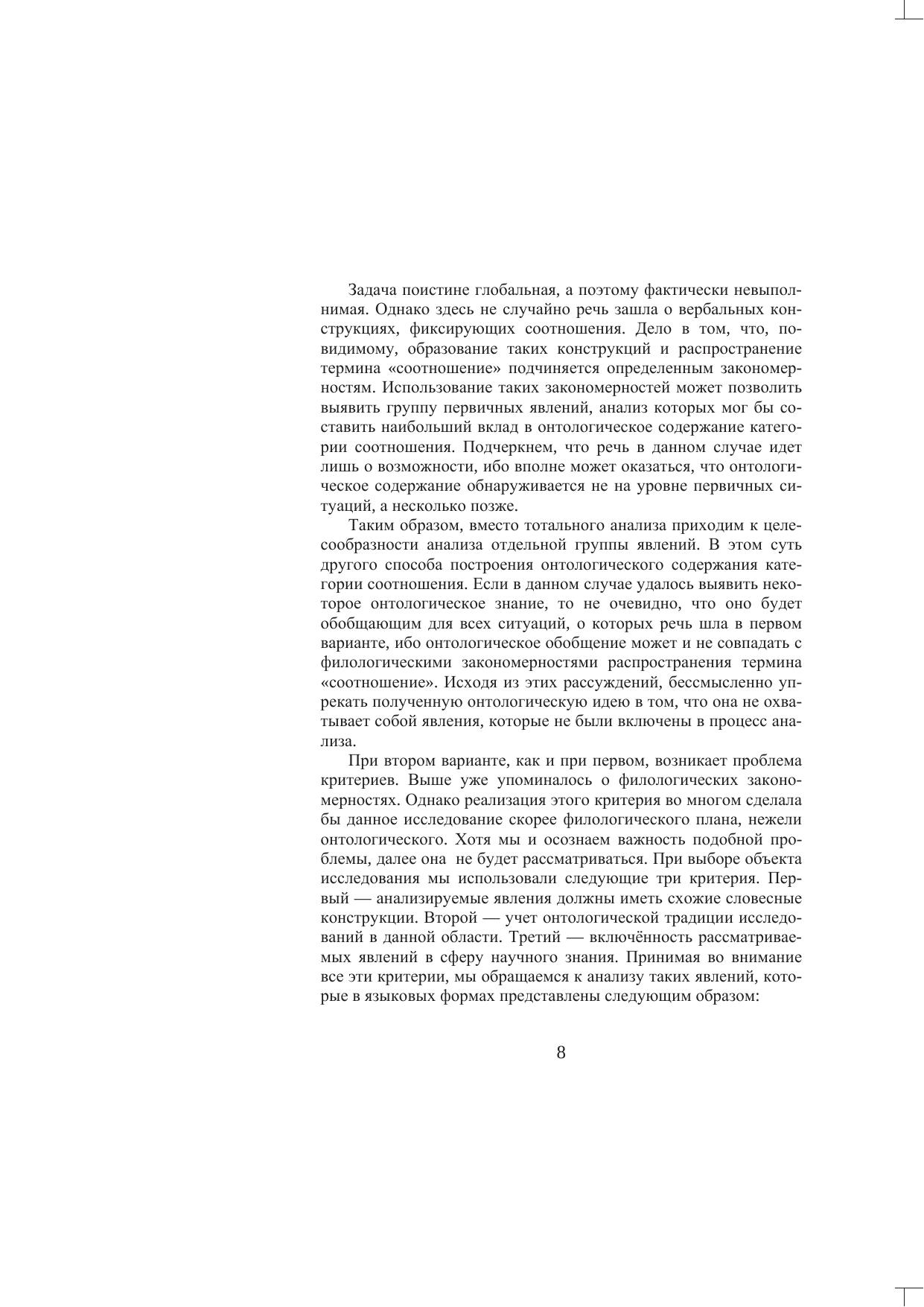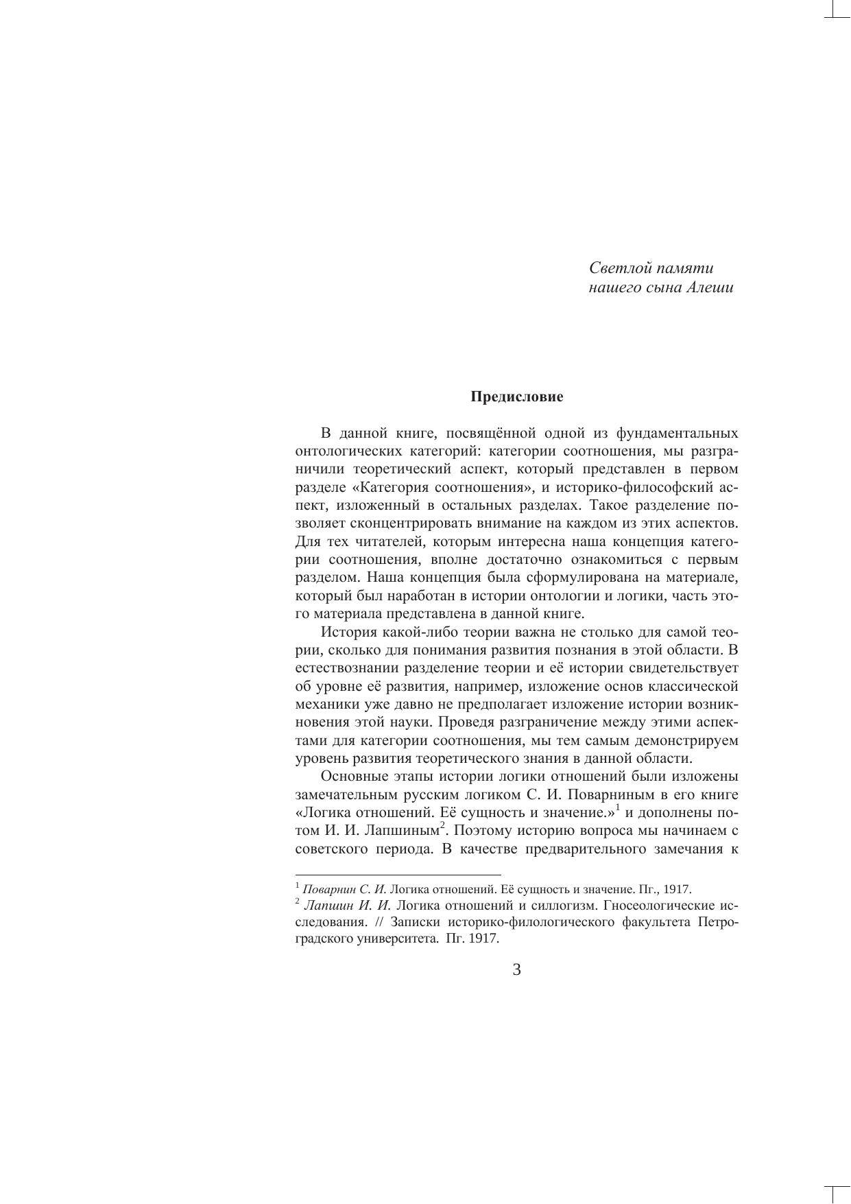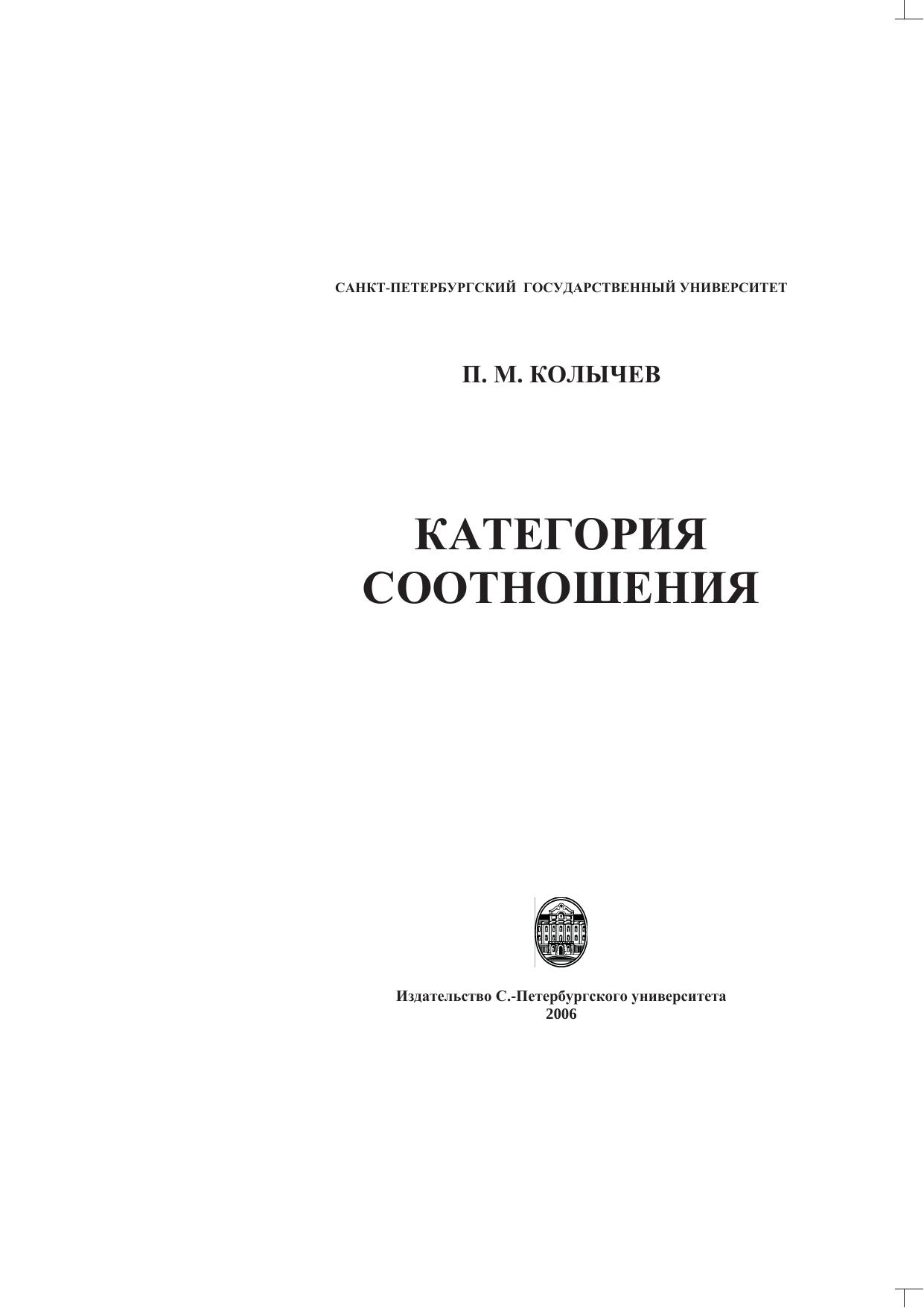В монографии категория соотношения рассматривается в двух аспектах: онтологическом и историко-философском. В первом случае содержание категории соотношения отражает формирование определённости сущего, при этом само содержание категории представлено как структура соотношения. Во втором аспекте рассмотрены взгляды на категорию отношения логиков и философов в советский период. Книга предназначена для специалистов в области онтологии, логики и истории философии.