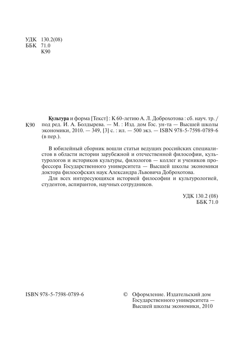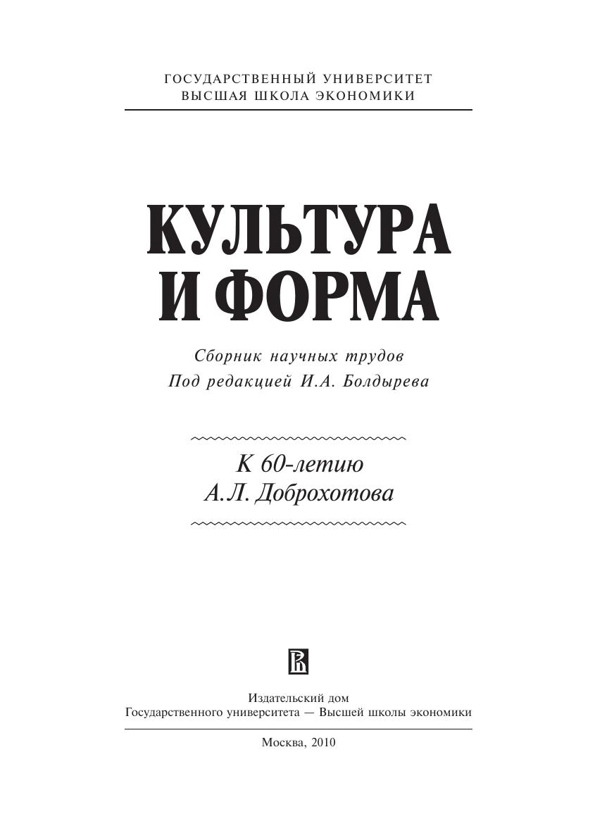 Культура и форма: к 60-летию А.Л. Доброхотова: сборник научых трудов