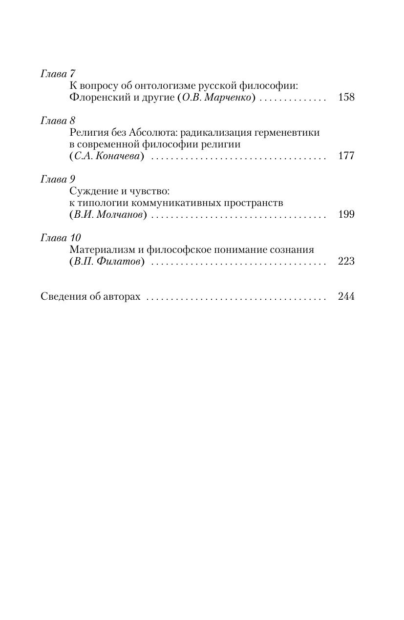В сборнике также представлены тексты по ряду фундаментальных теоретических вопросов: духовности, познания и понимания истины, осмысления религиозного опыта, базисных феноменов человеческого сознания, коммуникации и др.