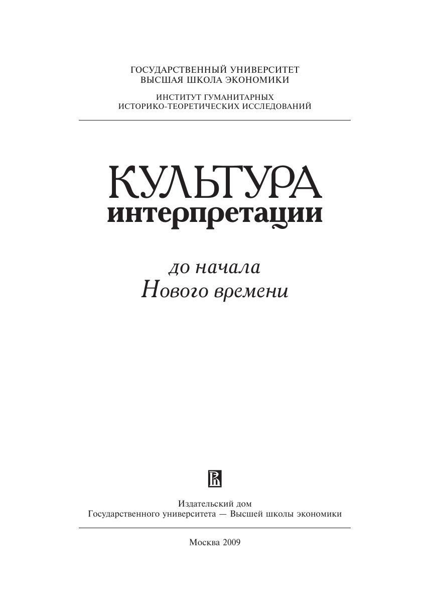 Исследования, вошедшие в коллективную монографию «Культура интерпретации до начала Нового времени», освещают важнейшие проблемы рецепции авторитетных текстов, учений, концепций на протяжении истории европейской мысли от святоотеческой эпохи до начала XVII в. Анализ методов и жанров интерпретации авторы монографии проводят на материале малоизученных памятников философской и богословской мысли античности и Средневековья, таких как явления апокрифической литературы первых веков н.э., святоотеческие творения, образцы учебной и вероучительной литературы Средневековья, сочинения позднесредневековых мистиков, созданные в Византии богословские труды и публицистика