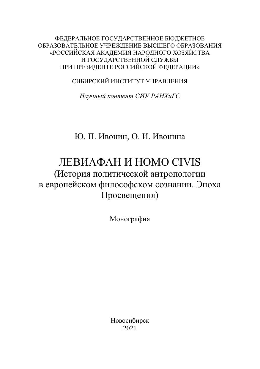 Левиафан и Homo civis (История политической антропологии в европейском философском сознании. Эпоха Просвещения)
