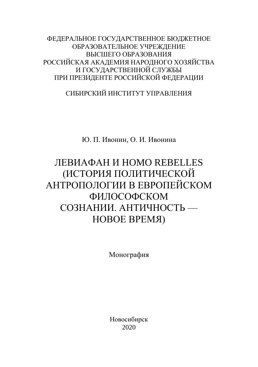 Левиафан и Homo rebelles (История политической антропологии в европейском философском сознании. Античность — Новое время)