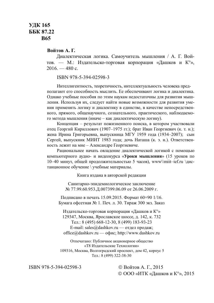 Рациональнее начать овладение диалектической логикой с помощью компьютерного аудио- и видеокурса «Уроки мышления» (15 уроков по 10–40 минут, общей продолжительностью 5 часов), www\\miit–ief.ru \дистанционное обучение \ учебные материалы