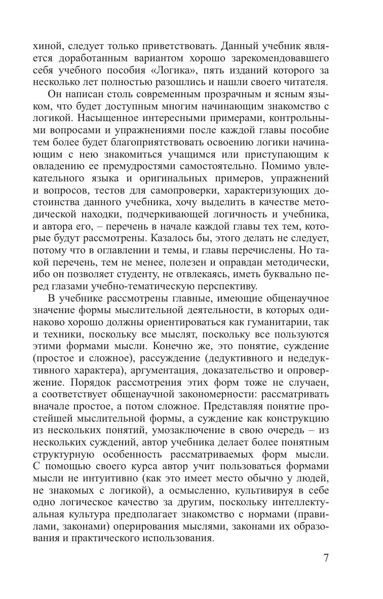 В оригинальной и последовательной форме изложено содержание курса логики в контексте разнообразных форм человеческой деятельности. Обосновывается фундаментальное значение логических знаний для учебной практики и интеллектуального творчества, в том числе и технического. Для студентов всех специальностей вузов, а также учащихся гимназий, лицеев, колледжей и училищ. Может быть использовано магистрантами и аспирантами, а также изучающими логику самостоятельно.