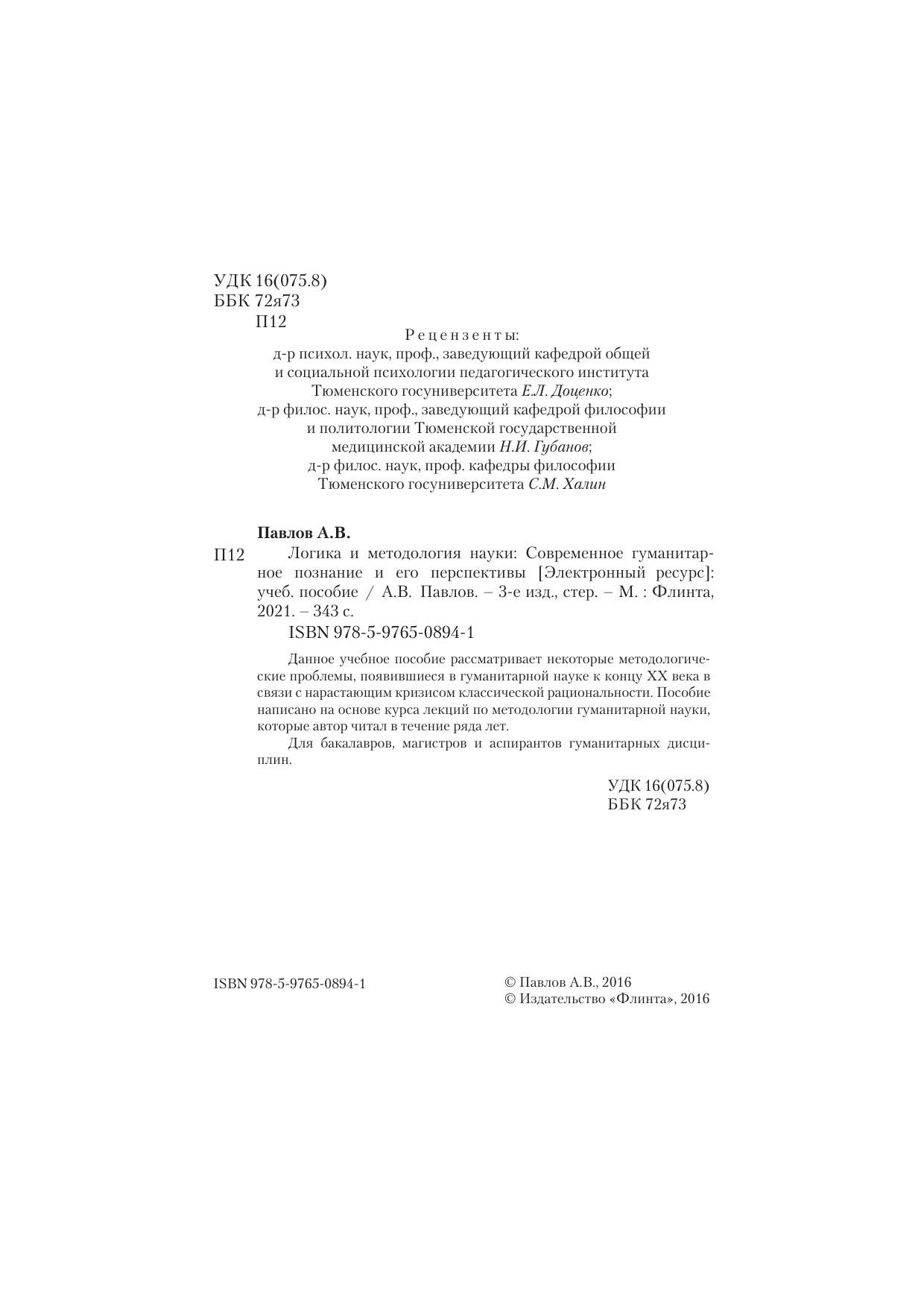 Логика и методология науки: современное гуманитарное познание и его перспективы научного познания Павлов А. В.