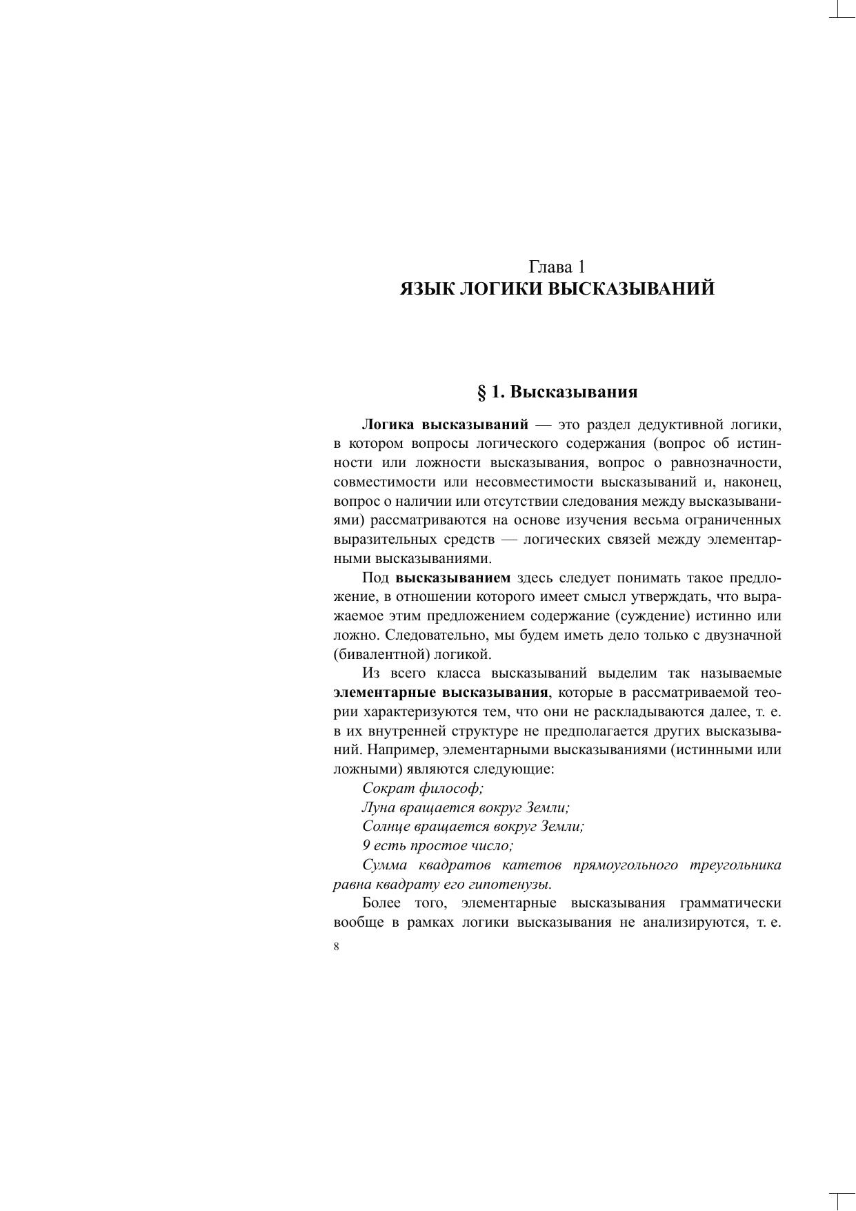 Логика высказываний рассматривается в данном учебном пособии применительно к восприятию студентов-гуманитариев, с более подробным, чем в классических учебниках, изложением наиболее важных ее разделов.