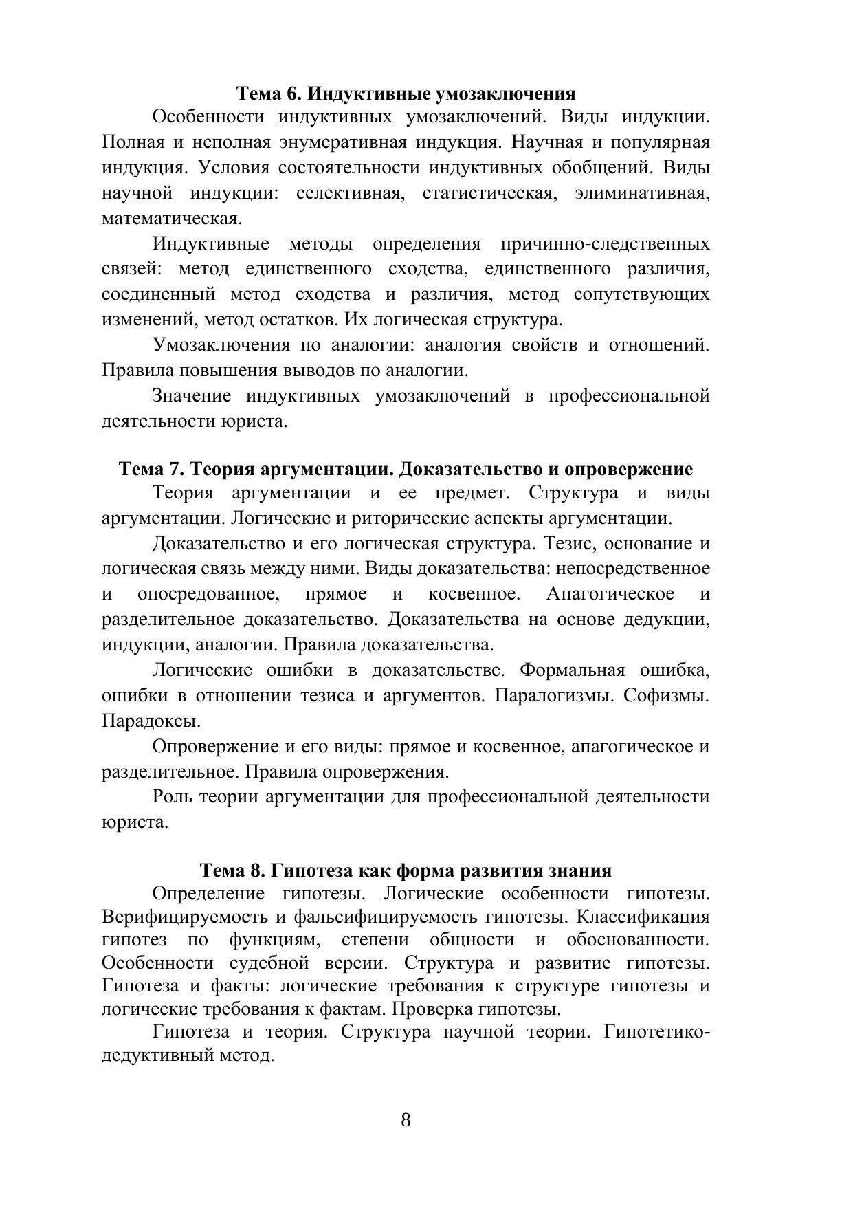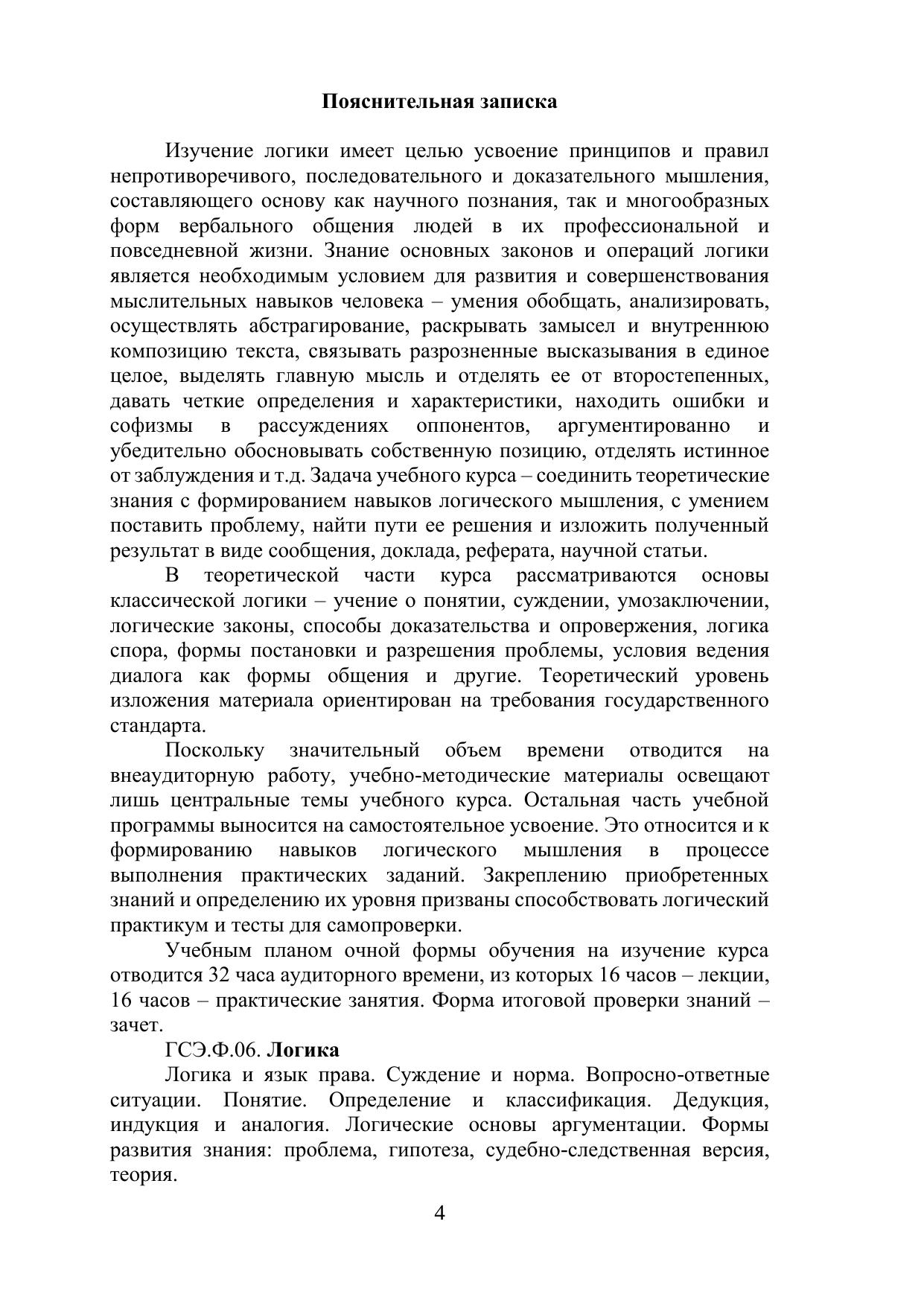 Учебно-методическое пособие подготовлено на основе действующего государственного стандарта и включает пояснительную записку, программу курса, список литературы, учебно-методические материалы, логический практикум, а также тематику докладов и рефератов, вопросы для самопроверки и контрольные вопросы к зачету. Предназначено для студентов очной и заочной форм обучения по направлению подготовки 40.03.01 «Юриспруденция» и 40.05.01 «Правовое обеспечение национальной безопасности», а также для студентов других факультетов. Печатается по решению ученого совета Владимирского филиала РАНХиГС.
