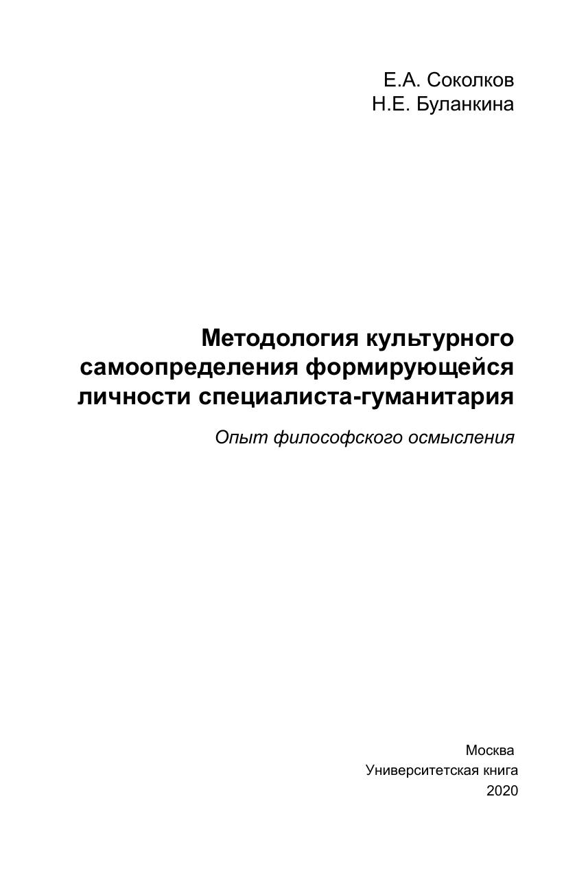 Методология культурного самоопределения формирующейся личности специалиста-гуманитария. Опыт философского осмысления