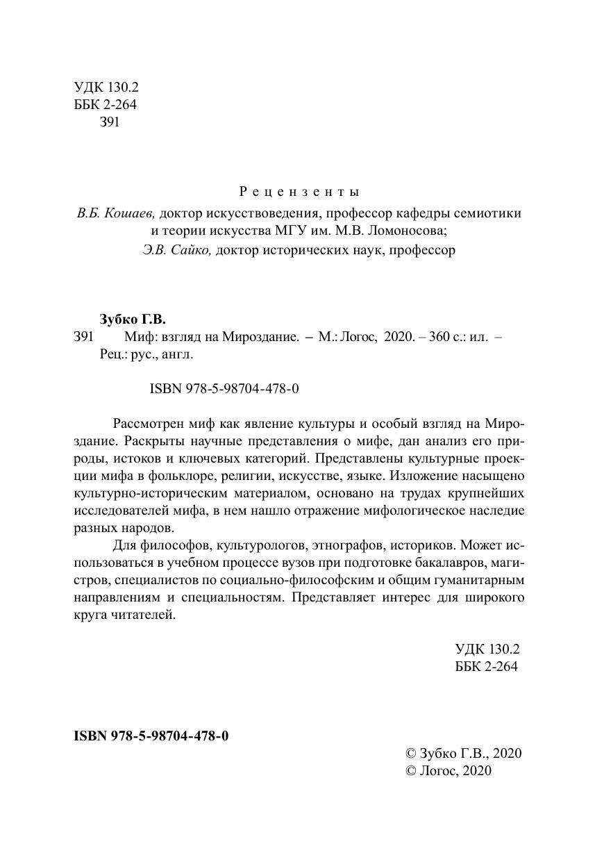 Рассмотрен миф как явление культуры и особый взгляд на Мироздание. Раскрыты научные представления о мифе, дан анализ его природы, истоков и ключевых категорий. Представлены культурные проекции мифа в фольклоре, религии, искусстве, языке. Изложение насыщено культурно-историческим материалом, основано на трудах крупнейших исследователей мифа, в нем нашло отражение мифологическое наследие разных народов. Для философов, культурологов, этнографов, историков. Может использоваться в учебном процессе вузов при подготовке бакалавров, магистров, специалистов по социально-философским и общим гуманитарным направлениям и специальностям. Представляет интерес для широкого круга читателей.