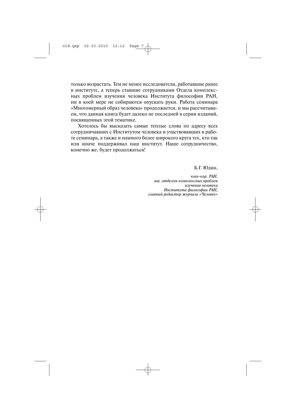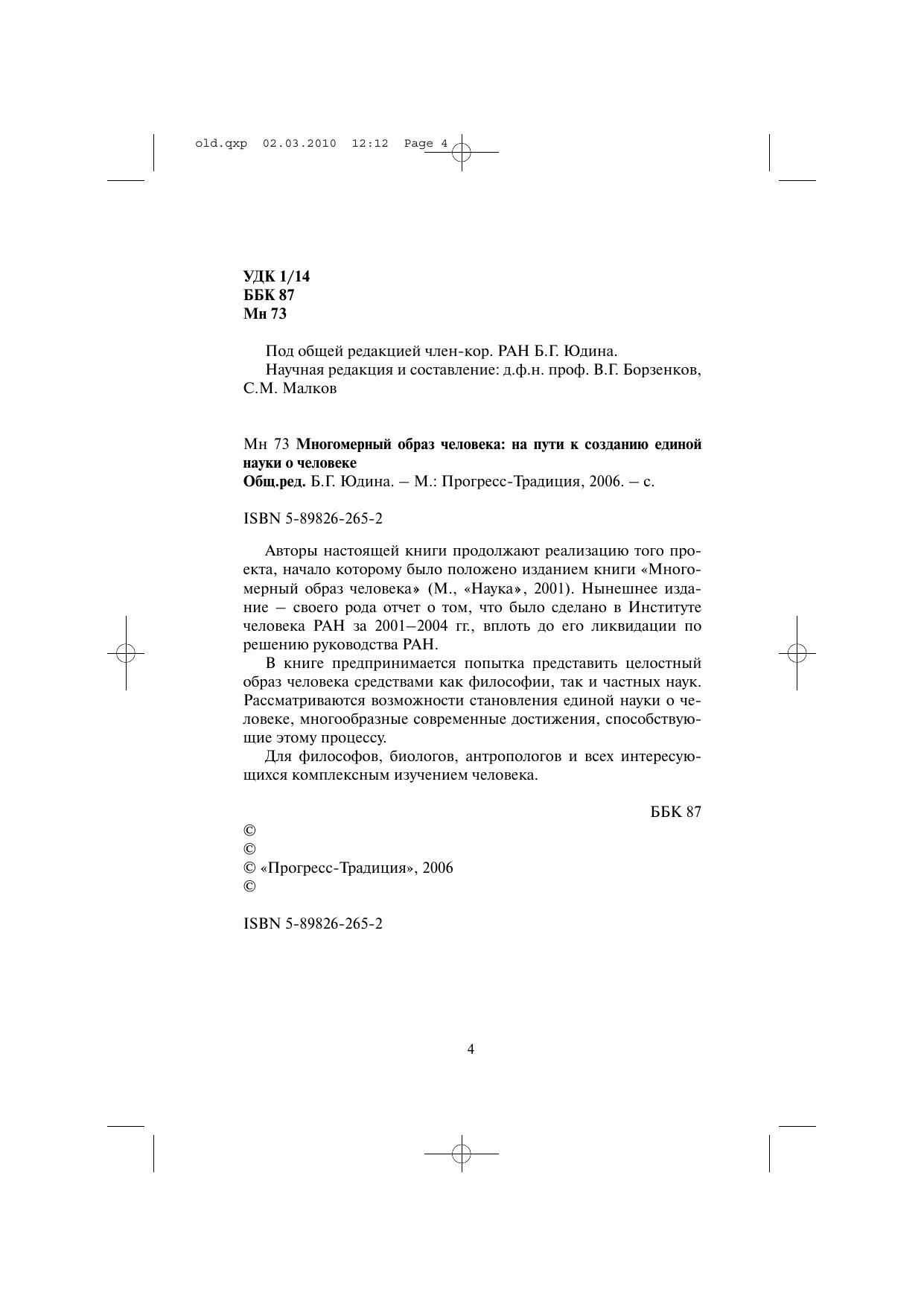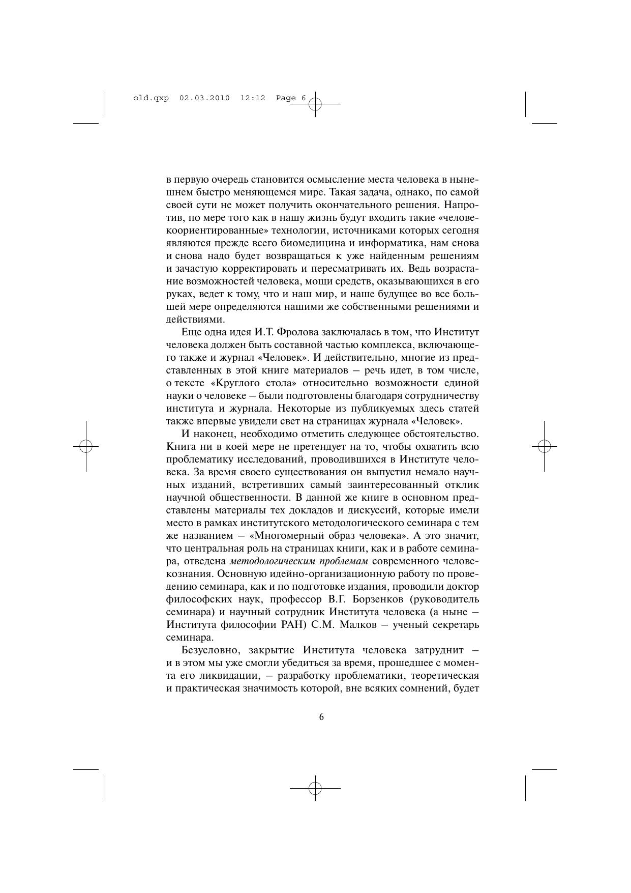 Авторы настоящей книги продолжают реализацию того проекта, начало которому было положено изданием книги "Многомерный образ человека" (М., "Наука", 2001). Нынешнее издание – своего рода отчет о том, что было сделано в Институте человека РАН за 2001–2004 гг., вплоть до его ликвидации по решению руководства РАН.