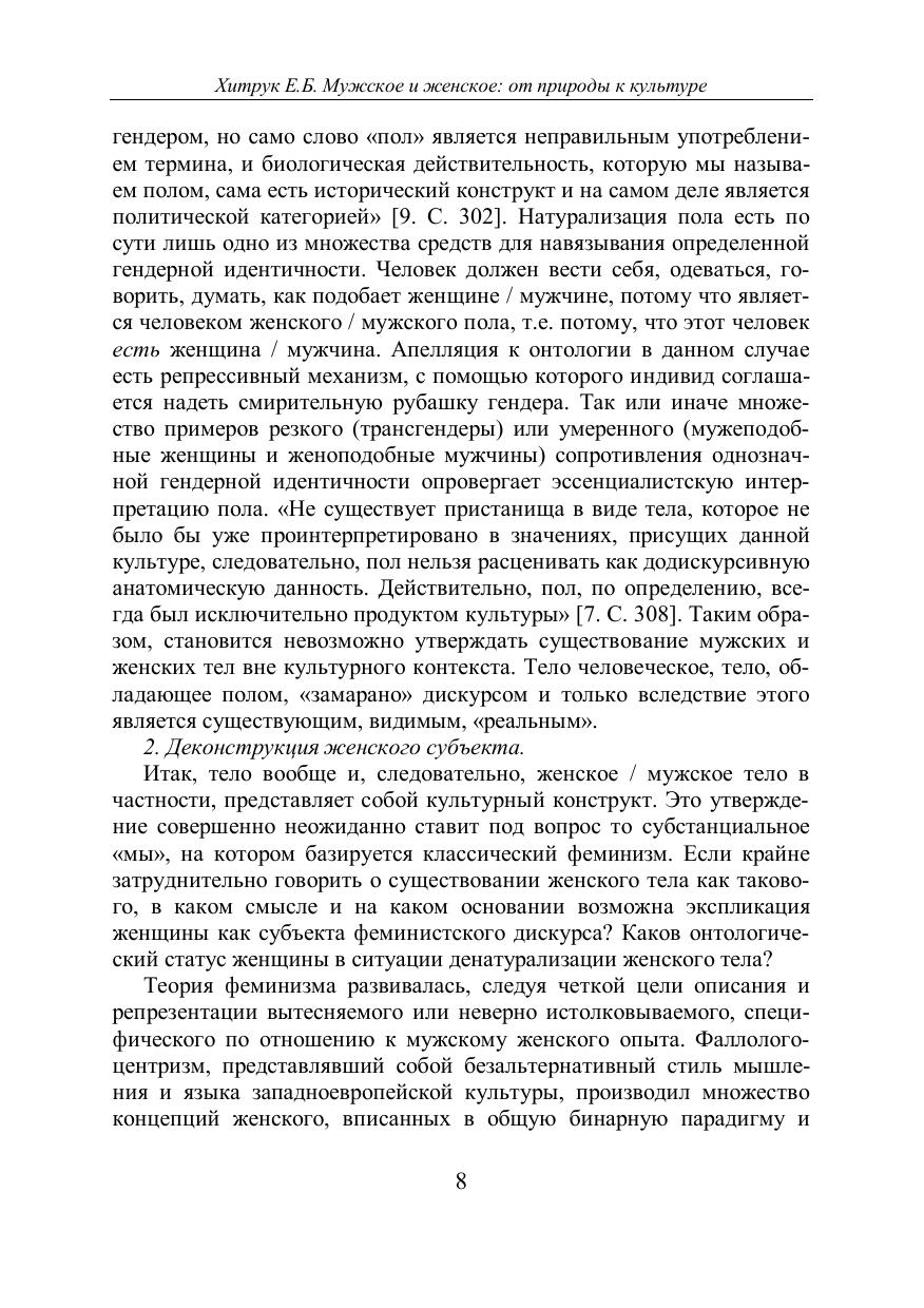 Монография посвящена исследованию трансформации онтологического статуса категорий «мужское» и «женское» в современной философии и социальной теории. Автор последовательно рассматривает способы натурализации категорий «мужское» и «женское» в классическом философском дискурсе, а также стратегии денатурализации половых различий в современной социальной философии. Основная идея книги заключается в том, что трансформация онтологического статуса категорий «мужское» и «женское» способствует разоблачению классического эталона маскулинности в качестве основного нормативного канона культуры. Следствием данного процесса становится выявление целого комплекса специфических мужских проблем в современном обществе («мужской вопрос XXI века»), таких как «отсутствующее» и «отстраненное» отцовство, мифы и риски мальчишеской культуры, необходимость создания системы социально-психологической поддержки мальчиков и мужчин. Для профессиональных философов, работающих в области гендерных исследований, и специалистов в области социологии, психологии, социальной работы и других социальных и гуманитарных наук.
