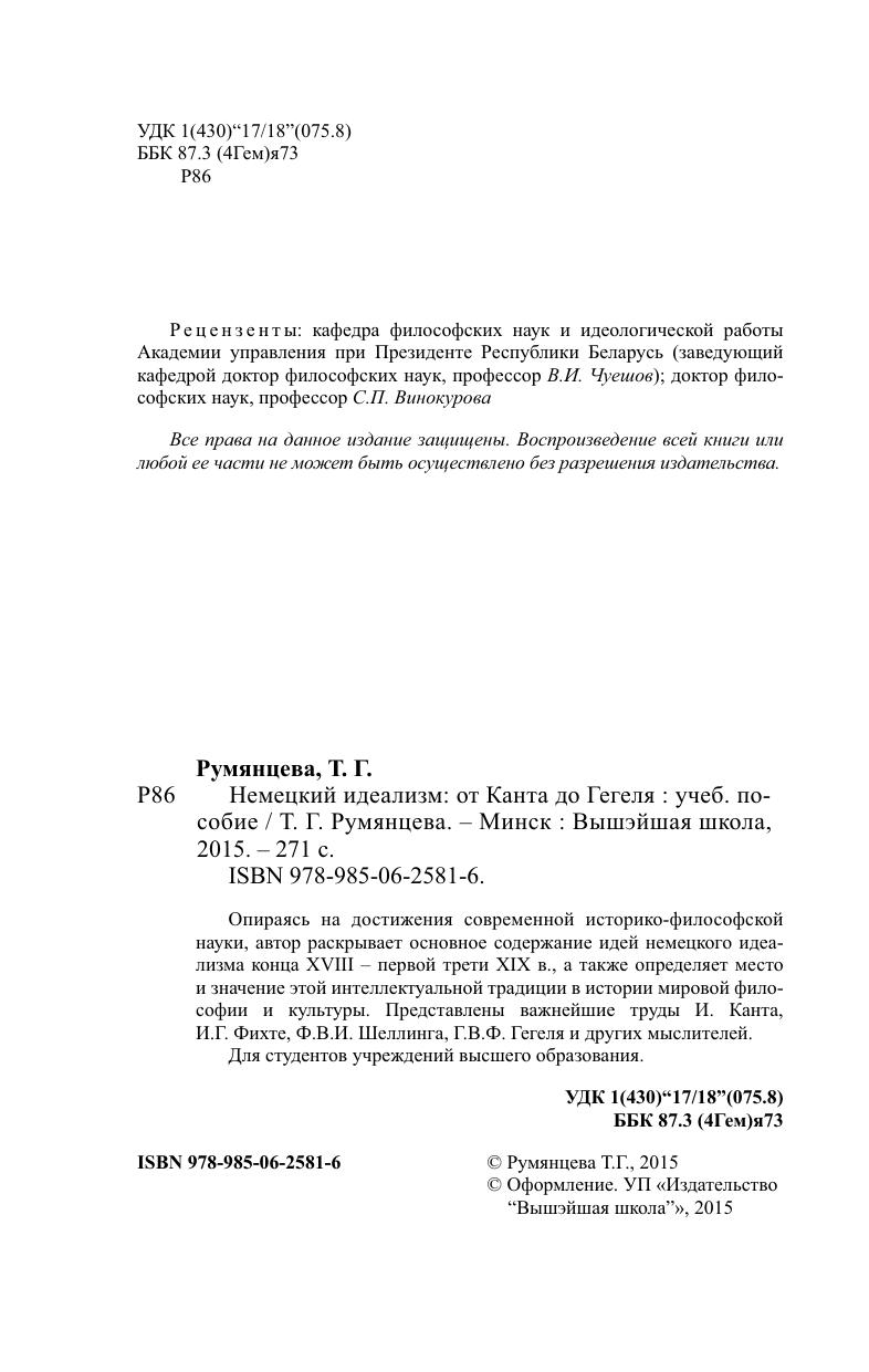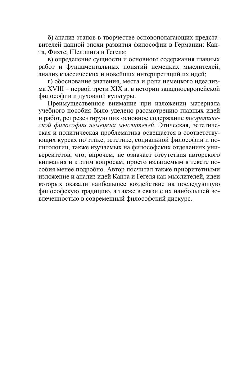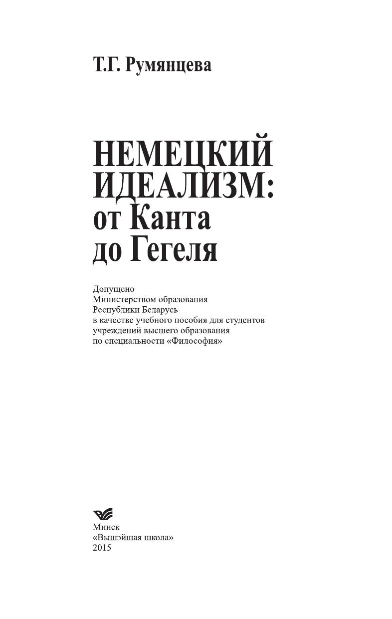 Опираясь на достижения современной историко-философской науки, автор раскрывает содержание идей немецкого идеализма конца XVII - первой трети XIXв., а также определяет место и значение этой интеллектуальной традиции в истории мировой философии и культуры. Представлены важнейшие труды И Канта, И.Г. Фихте, Ф.В.И.Шеллинга, Г.В.Ф. Гегеля и других мыслителей. Для студентов учреждений высшего образования.