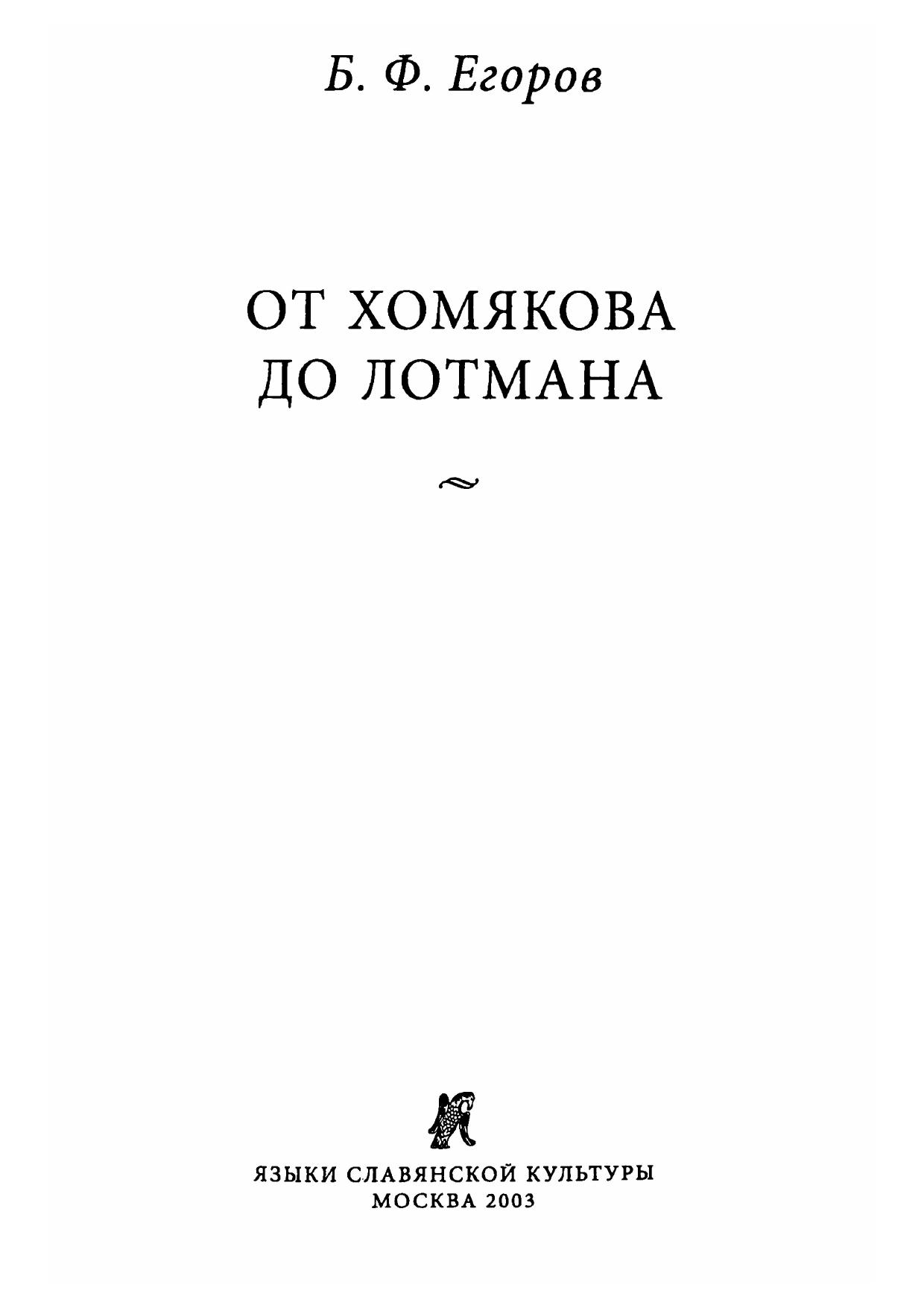От Хомякова до Лотмана