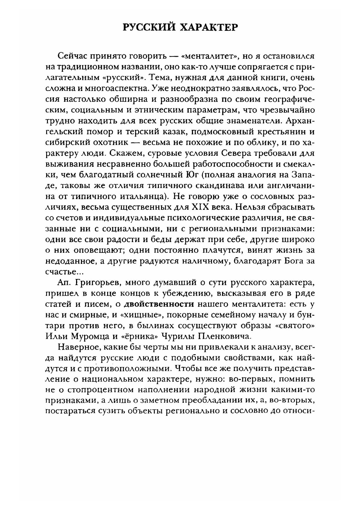 В книгу вошли 23 научно-популярные статьи, в основном из областей, которыми автор много лет занимался. Главные из них: славянофилы и своеобразие русской культуры и национального характера Своеобразие рассматривается в сравнении с западноевропейскими и японскими культурными чертами. Такие же сопоставления в сходстве и отличии затем проводятся применительно к отдельным личностям – в условно названных пяти «плутарховых парах» писателей и мыслителей, от «В. Боткин и А. Герцен» до «М. Бахтин и Ю. Лотман». Бахтинская тема естественно переходит в группу статей о творчестве этого выдающегося философа и литературоведа, а вслед за последней статьей этой группы «Невельский кружок» так же естественно следует раздел «Литературное краеведение» со статьями о В. Жуковском, Н. Огареве, Ал. Григорьеве. Из новейших разысканий Б.Ф. Егорова составлен раздел «Православная церковь и литература», включающий статью «Православные мыслители о Пушкине» и очерки об А.М. Бухареве и А.М. Иванцове-Платонове.