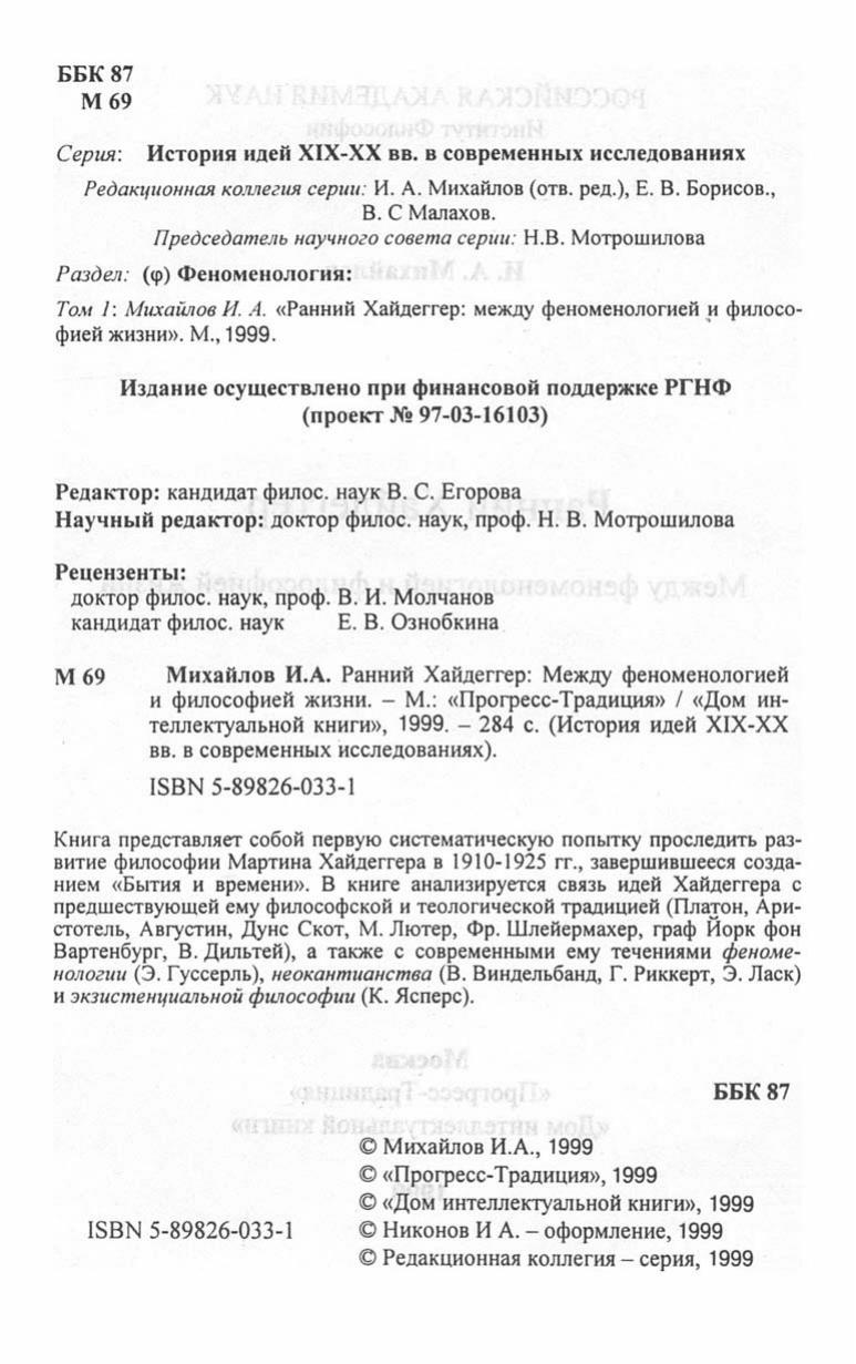 Книга представляет собой первую систематическую попытку проследить развитие философии Мартина Хайдеггера в 1910-1925 гг., завершившееся созданием "Бытия и времени". В книге анализируется связь идей Хайдеггера с предшествующей ему философской и теологической традицией (Платон, Аристотель, Августин, Дунс Скот, М. Лютер, Фр. Шлеермахер, граф Йорк фон Ватртенбург, В. Дильтей), а также с современными ему течениями феноменологии (Э. Гуссерль), неокантианства (В. Виндельбанд, Г. Риккерт, Э. Ласк) и экзистенциальной философии (К. Ясперс).