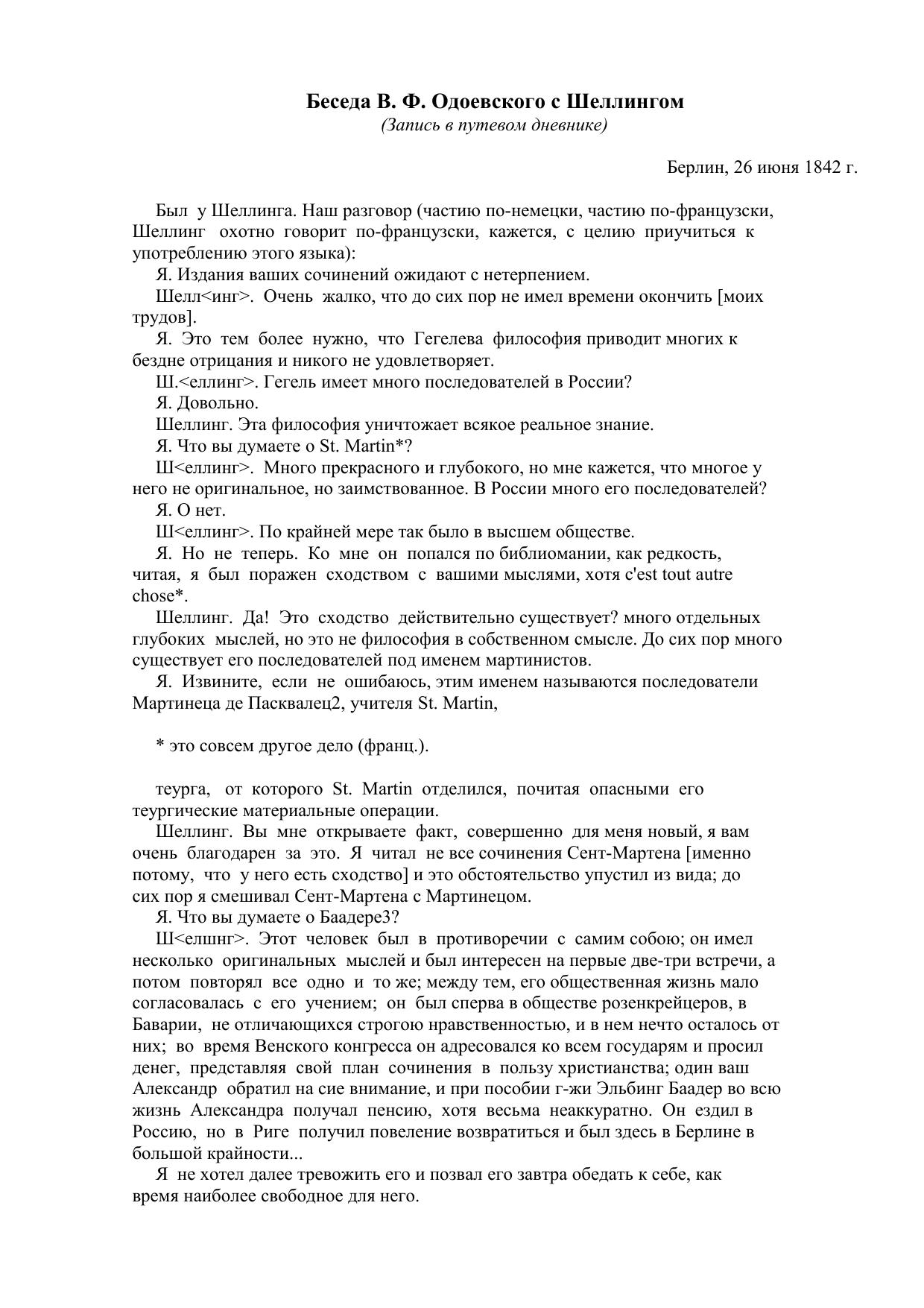 Беседа В. Ф. Одоевского с Шеллингом