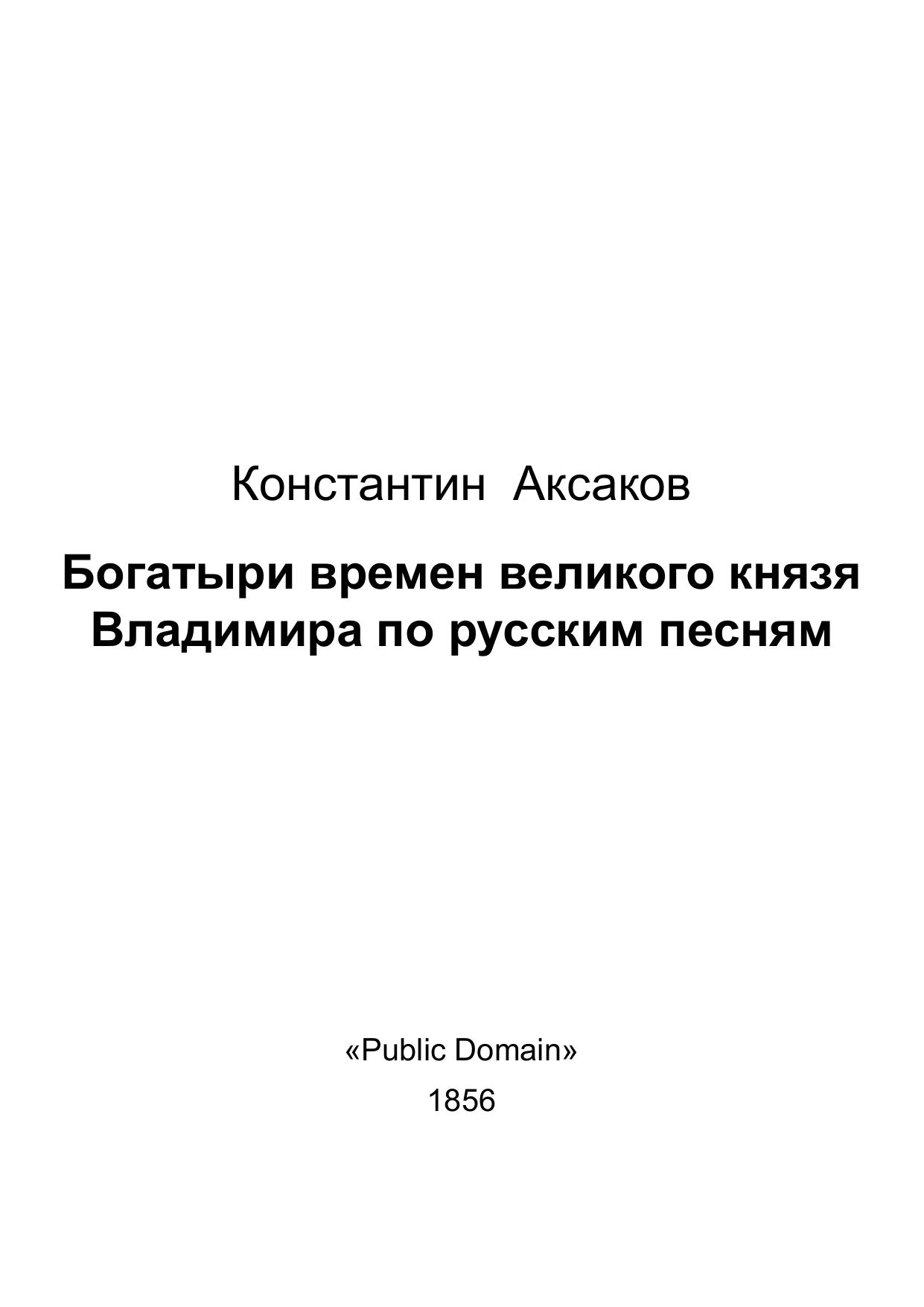 Богатыри времен великого князя Владимира по русским песням