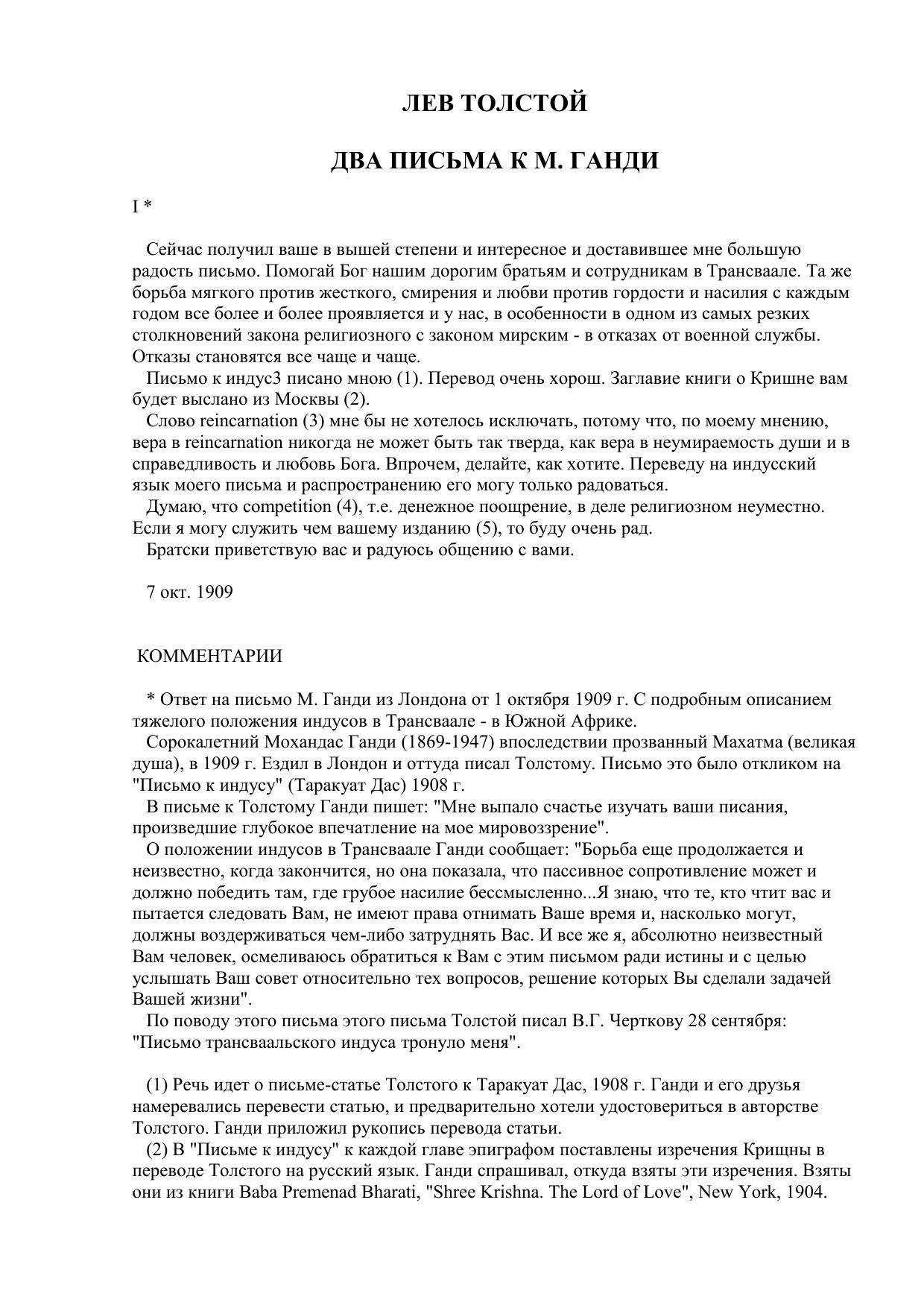 Два письма к М. Ганди
