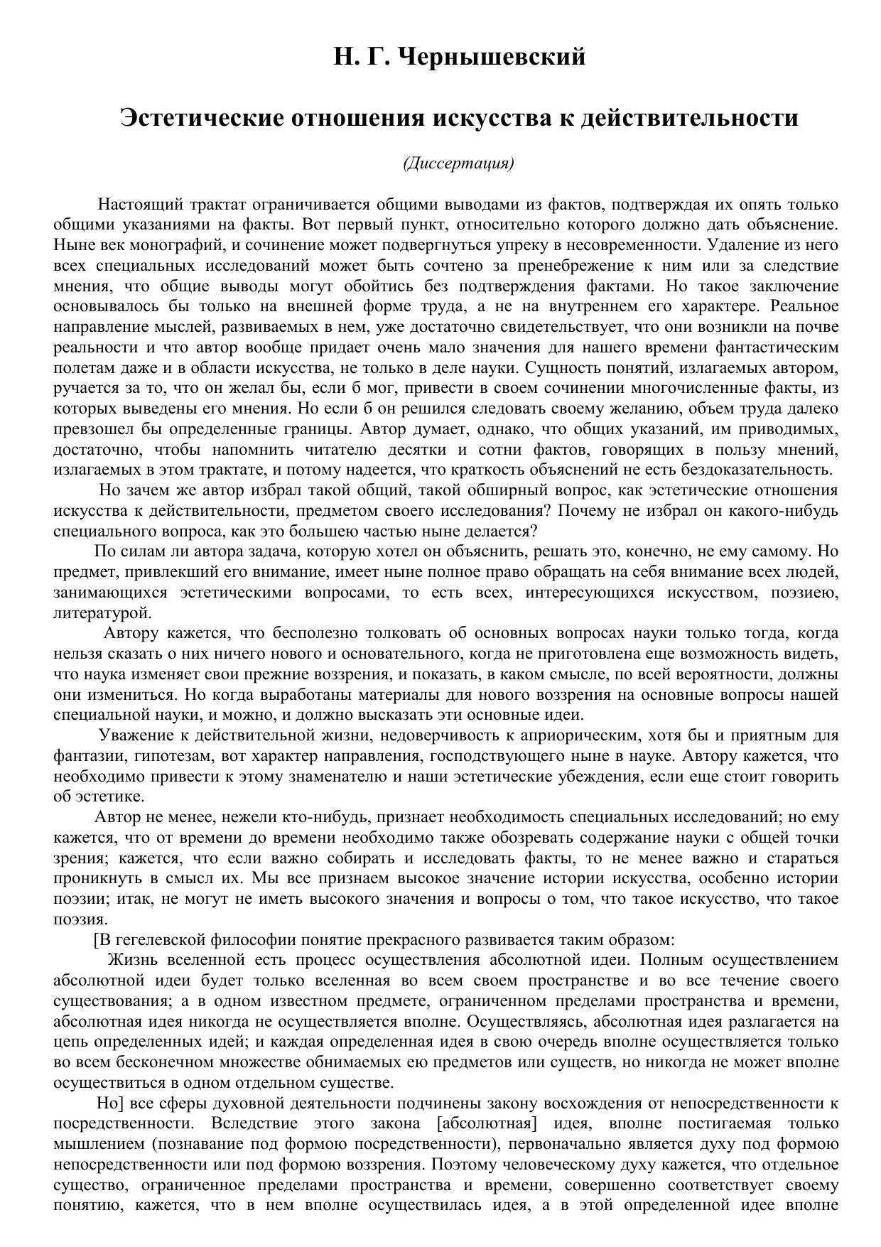 Эстетические отношения искусства к действительности. Магистерская диссертация