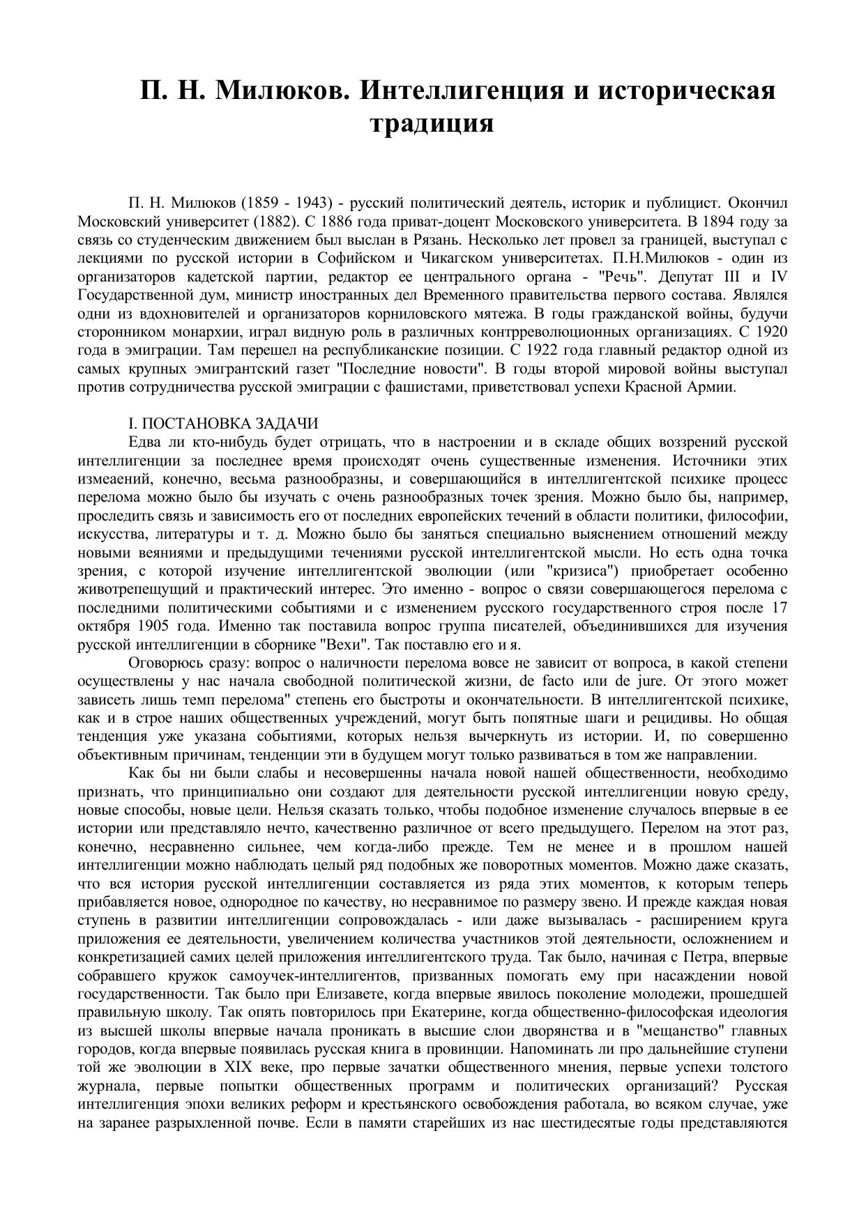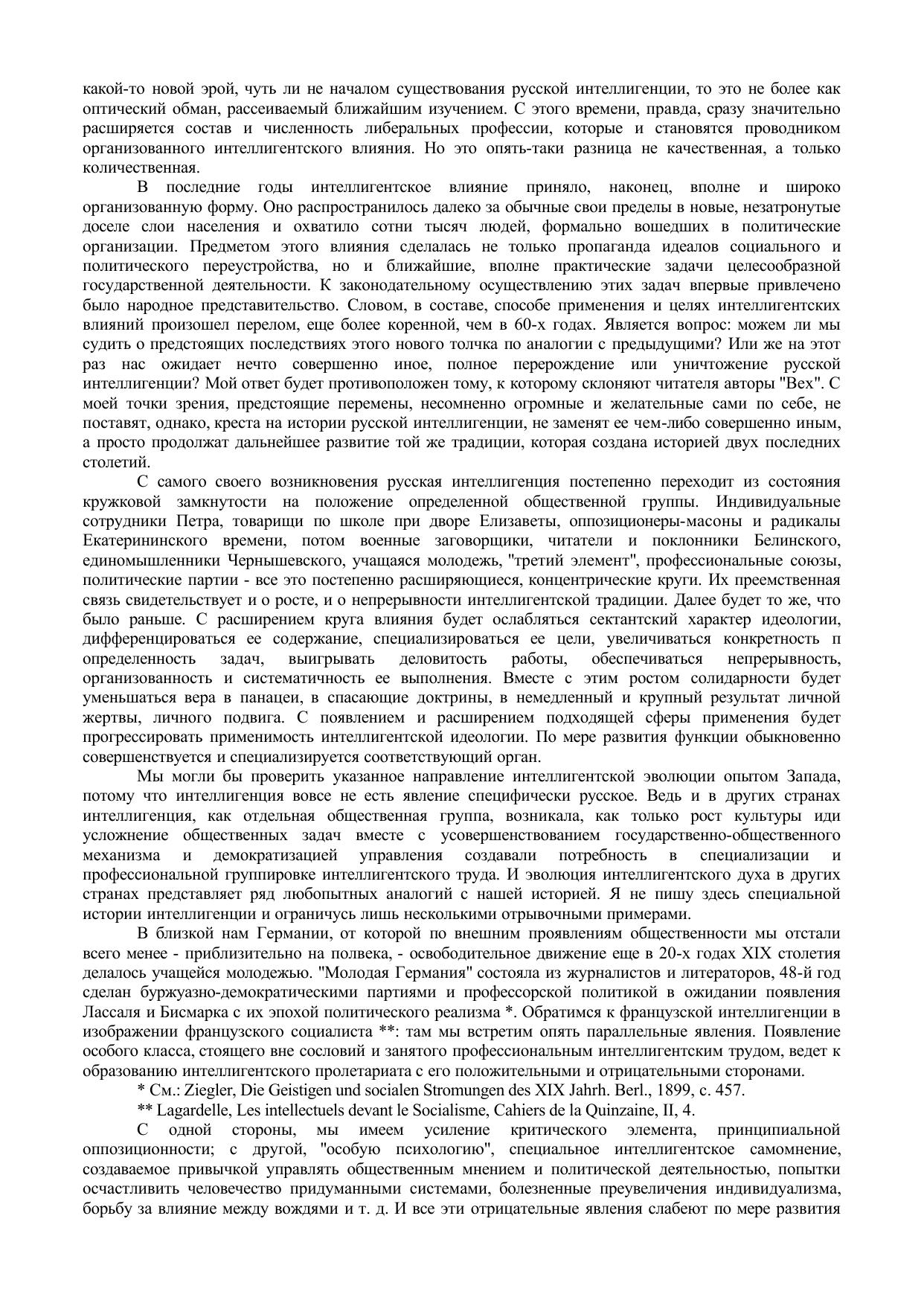 Интеллигенция и историческая традиция // Интеллигенция в России. — СПб., 1910