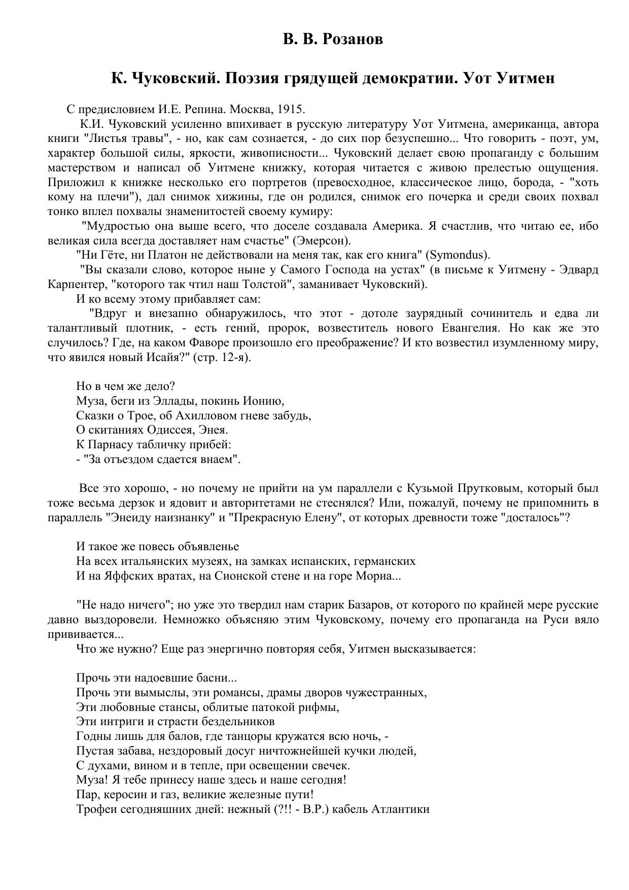 К. Чуковский. Поэзия грядущей демократии. Уолт Уитмен