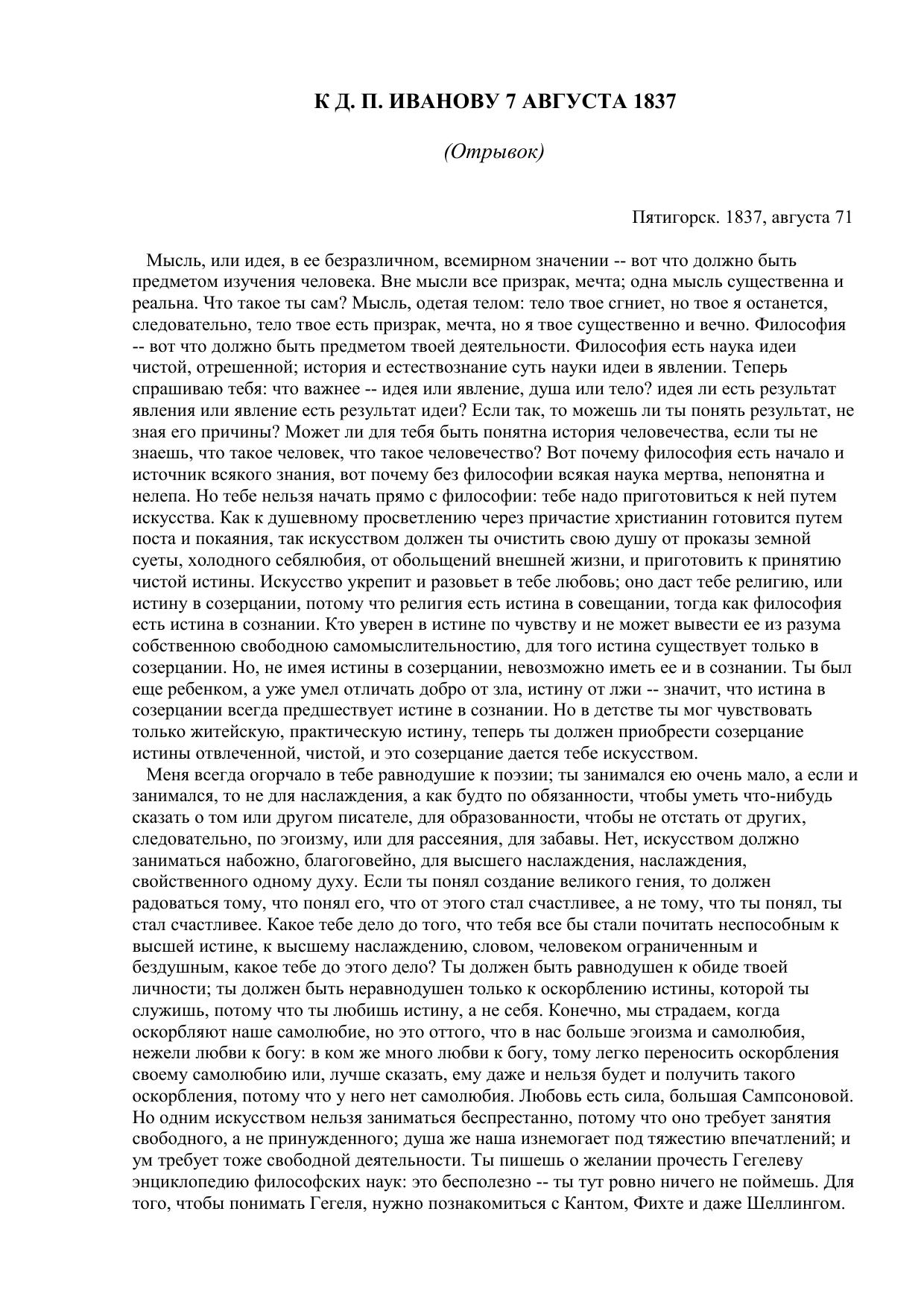 К Д. П. Иванову. 7 августа 1837