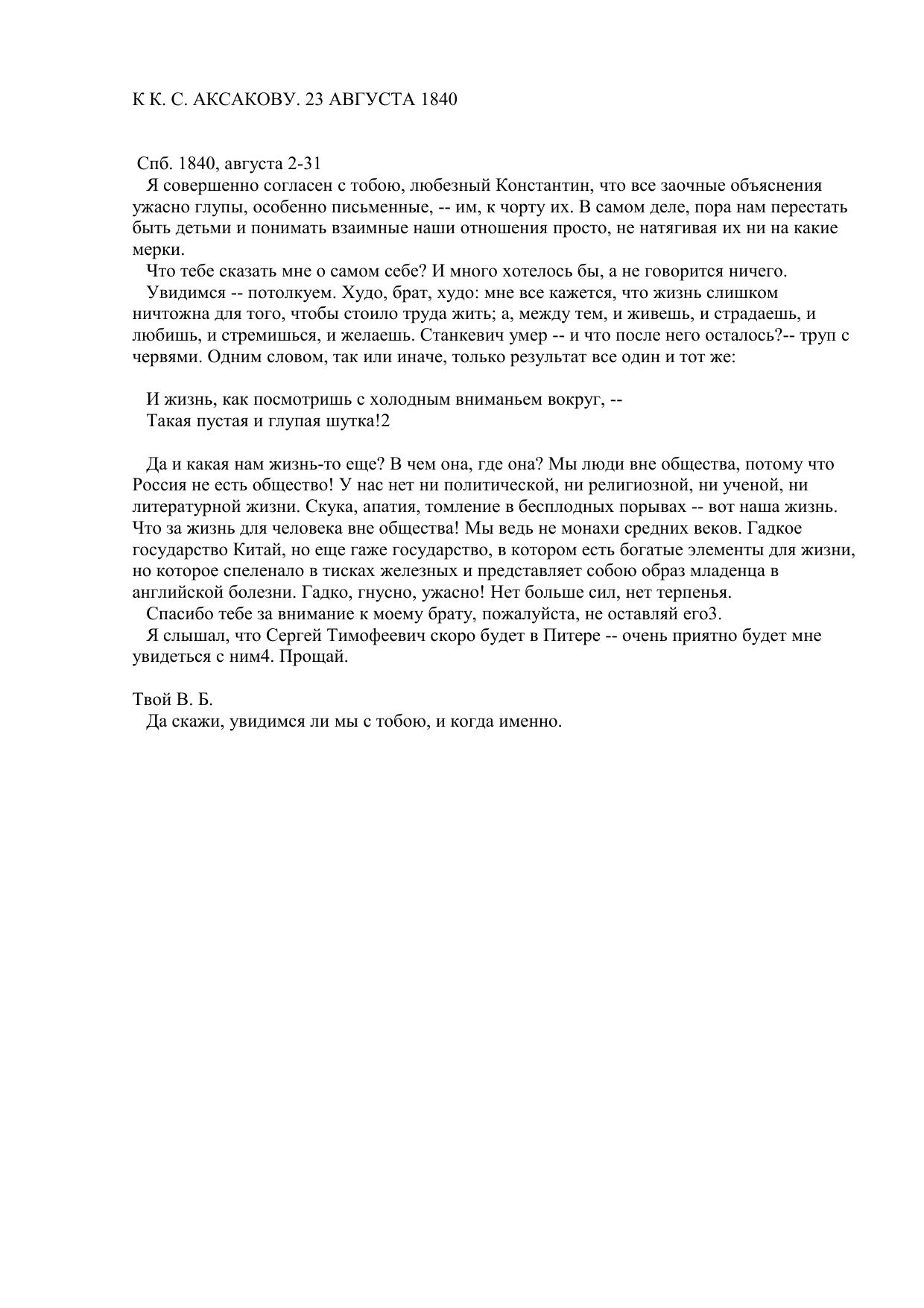 К К. С. Аксакову. 23 августа 1840