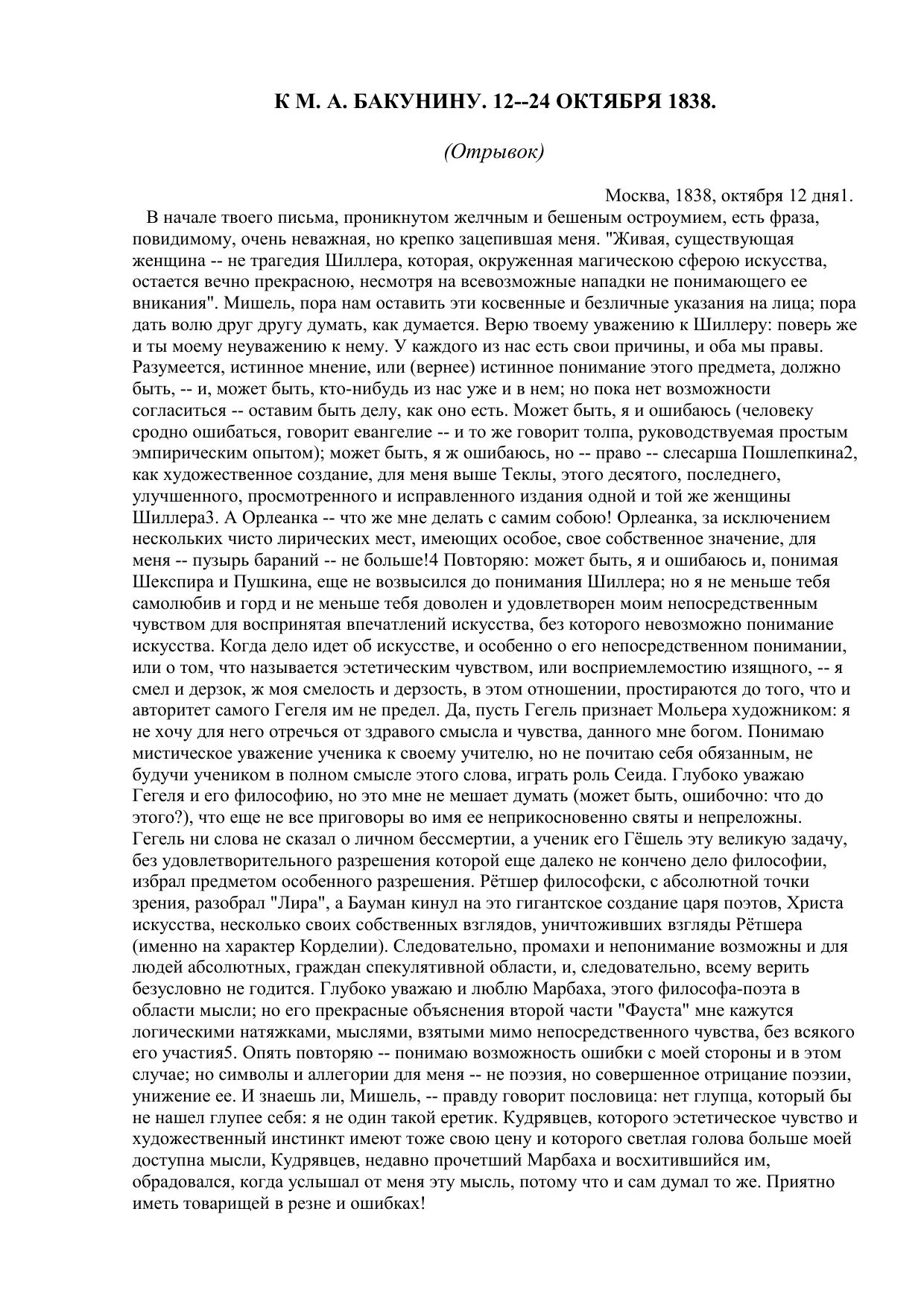 К М. А. Бакунину. 12—24 октября 1838