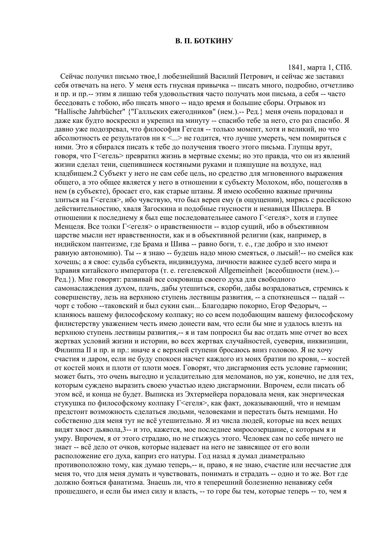 К В. П. Боткину. 1 марта 1841
