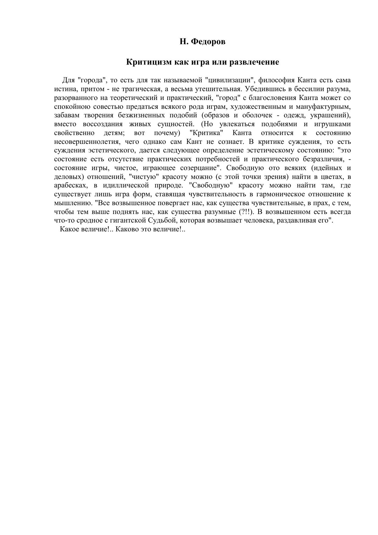 Критицизм, как игра или развлечение