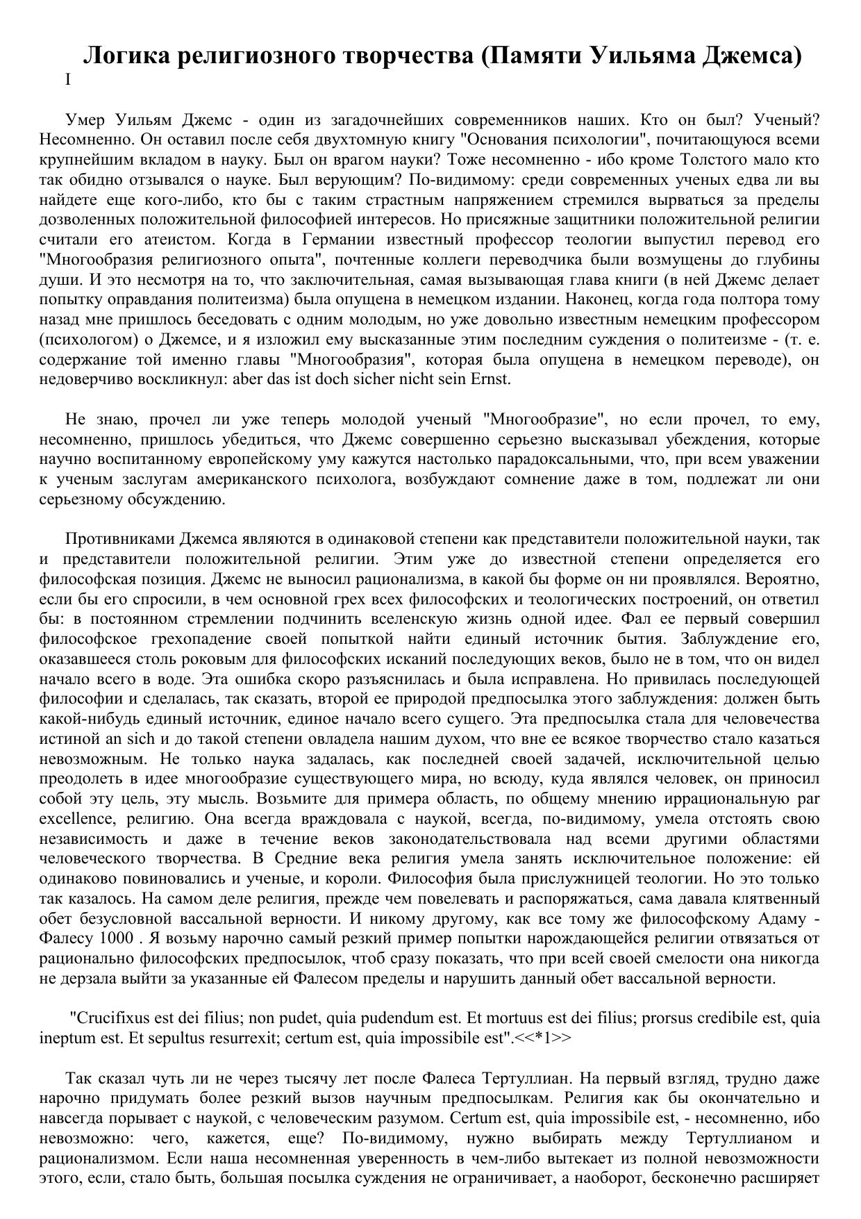 Логика религиозного творчества (Памяти Уильяма Джемса)