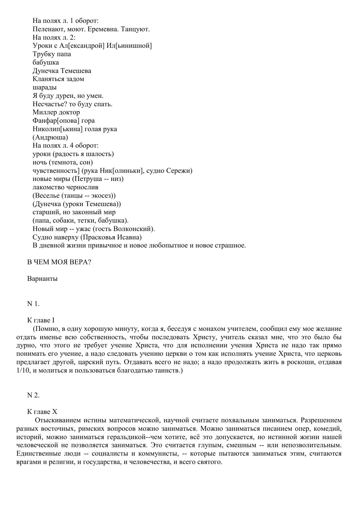 Моя жизнь и В чем моя вера ? (плановые заметки и варианты)