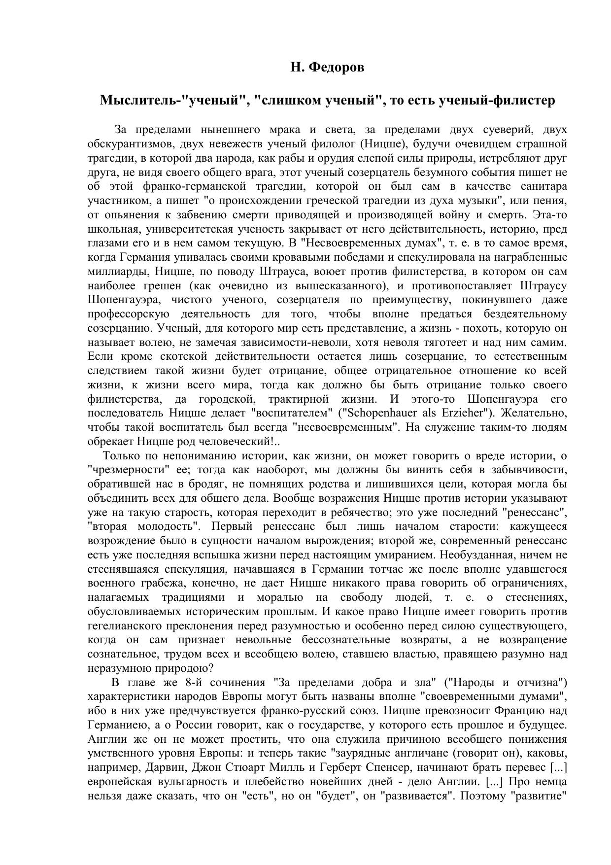 Мыслитель- «учёный», «слишком учёный», то есть учёный-филистер
