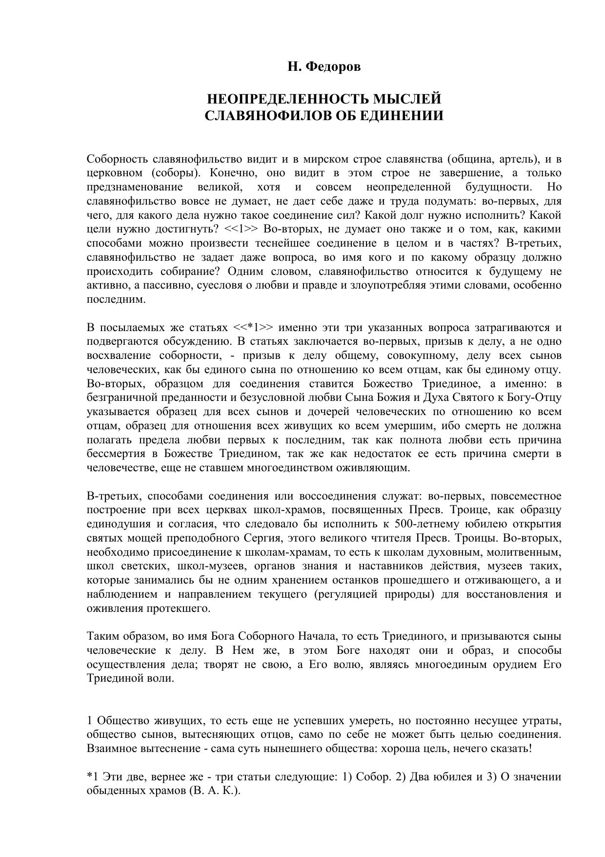 Неопределённость мыслей славянофилов об единении