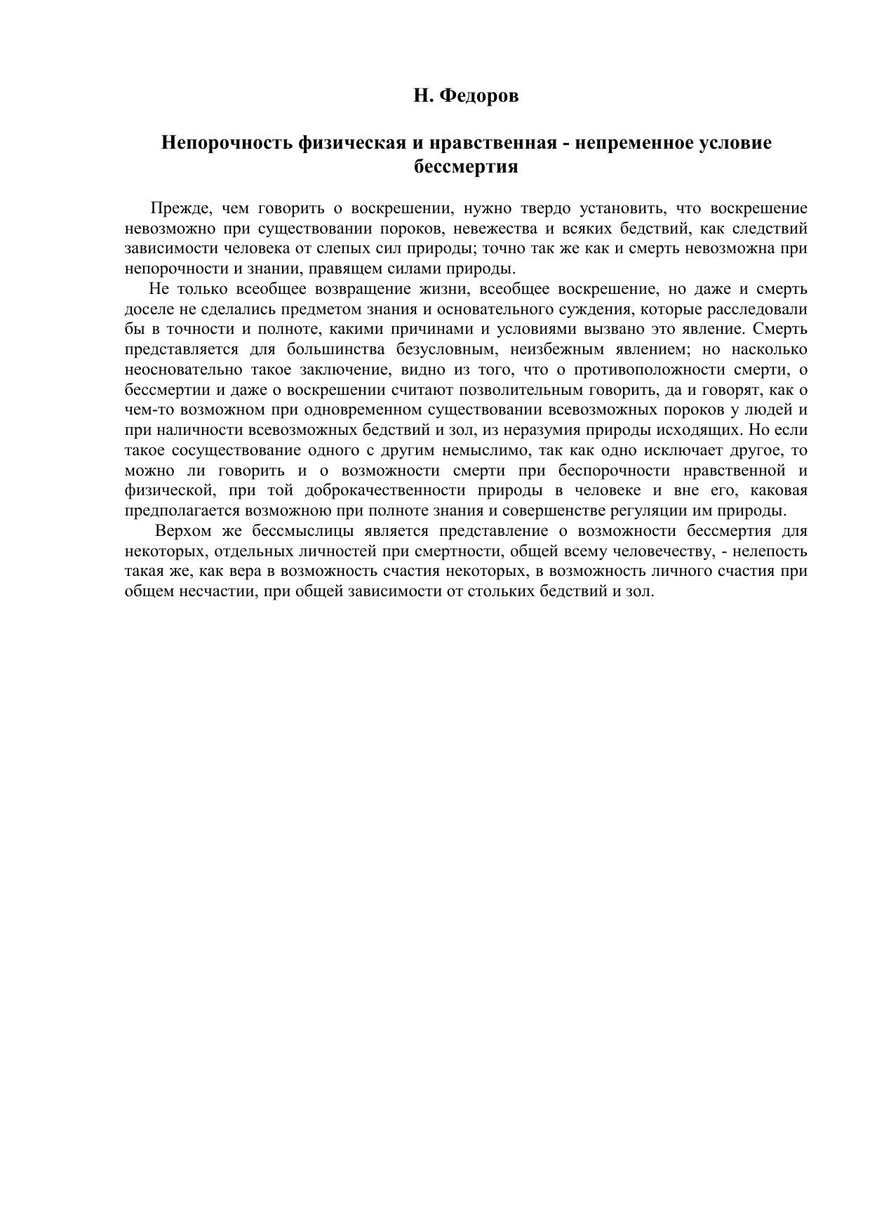 Непорочность физическая и нравственность — непременное условие бессмертия