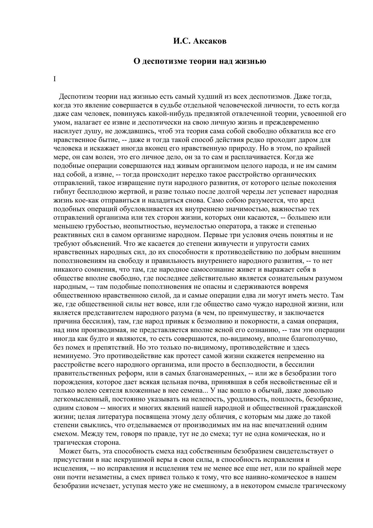 О деспотизме теории над жизнью
