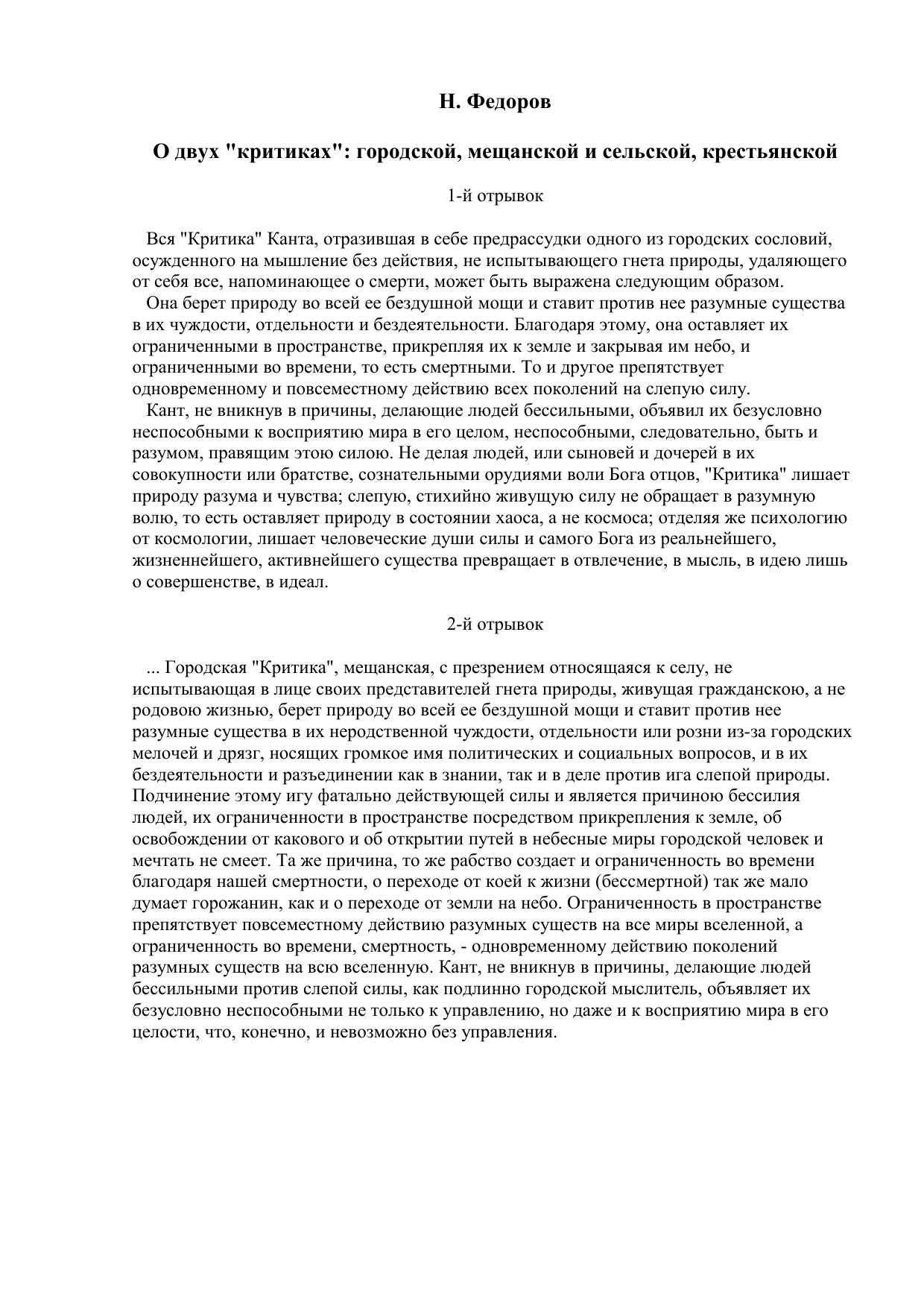 О двух критиках: городской, мещанской и сельской, крестьянской