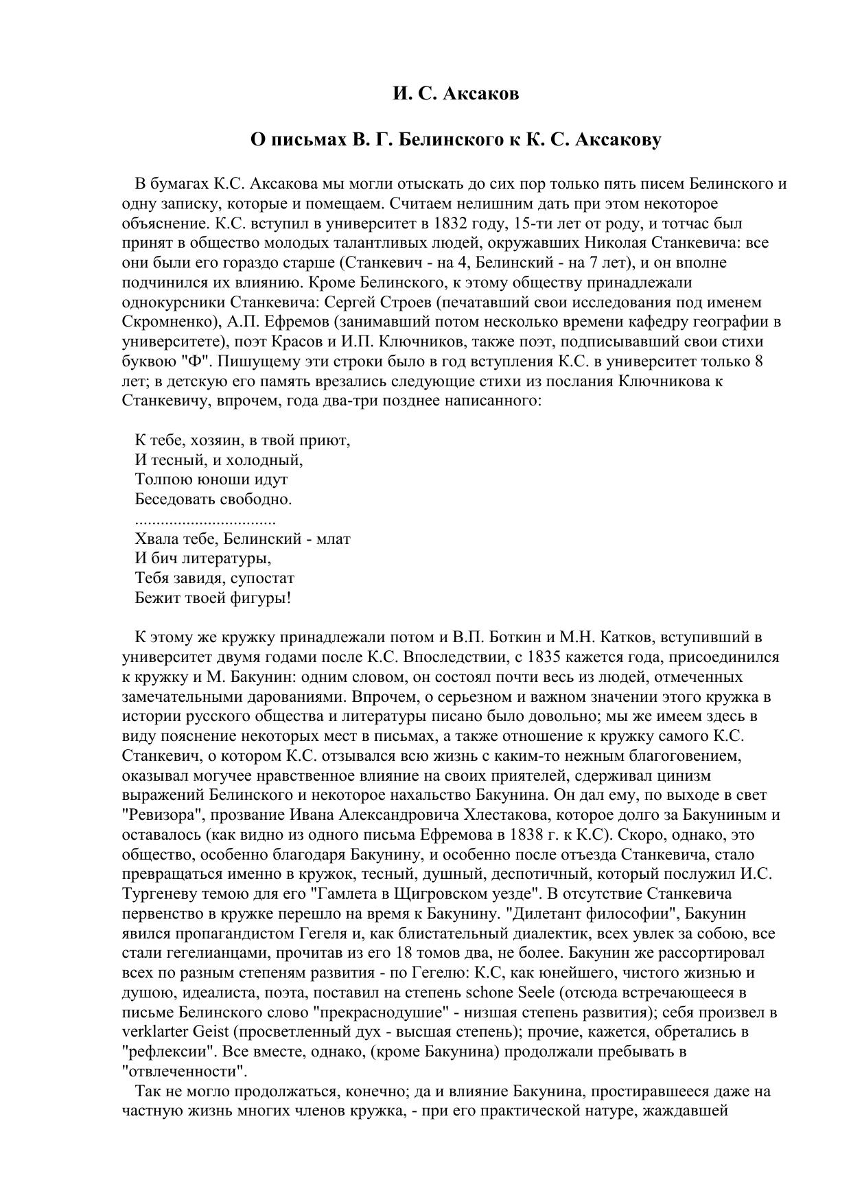 О письмах В. Г. Белинского к К. С. Аксакову