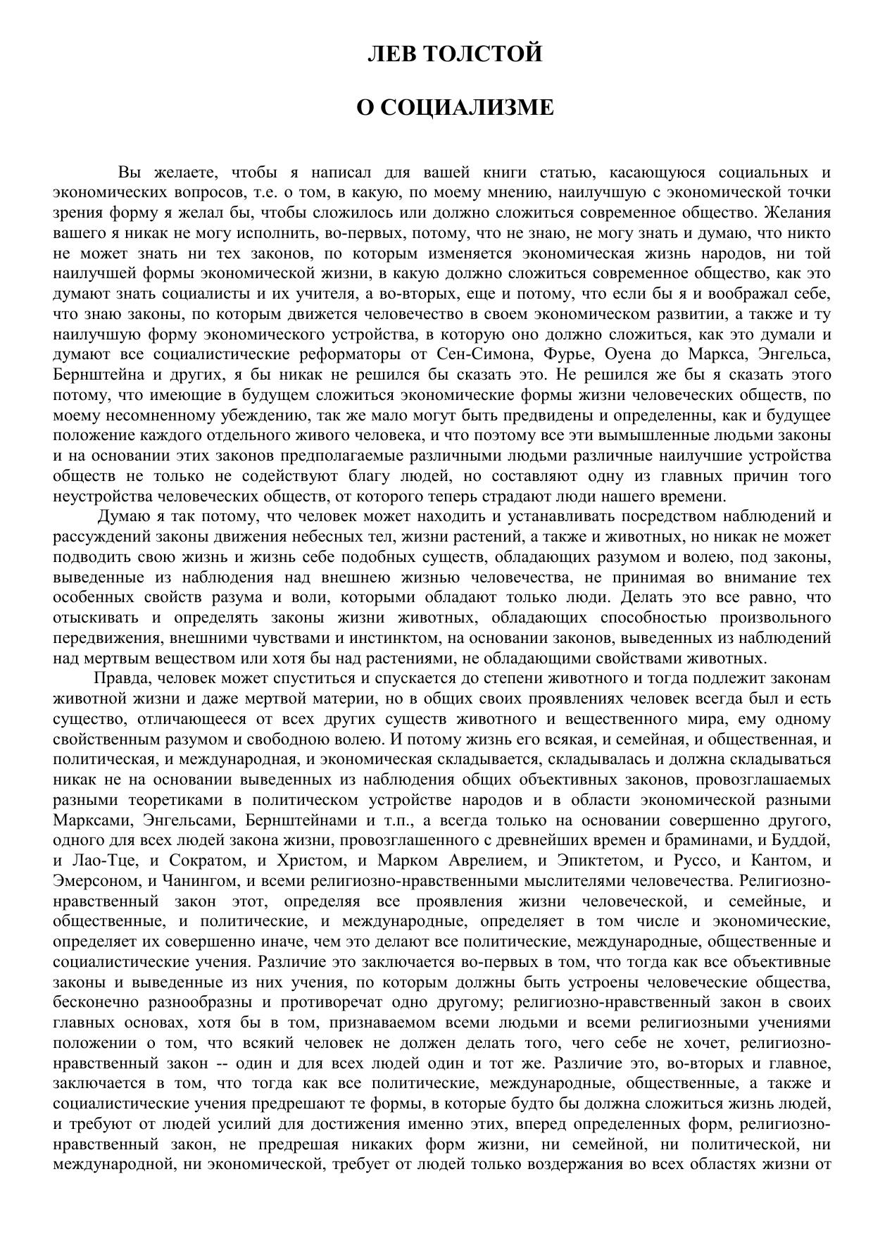 О социализме (последняя статья Л. Н. Толстого)